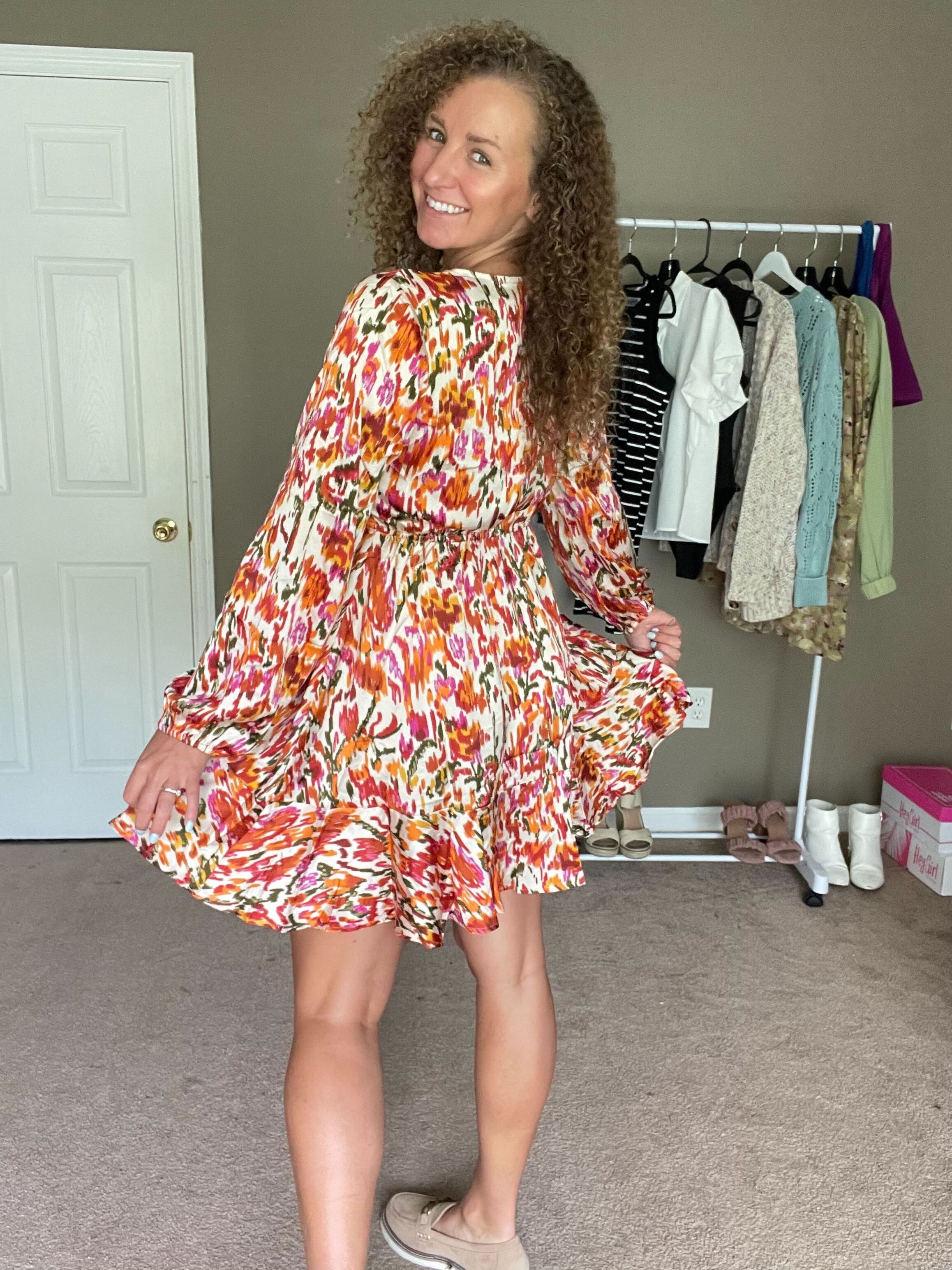 V-Neck Balloon Sleeve Dress