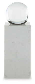 This exquisite sculpture effortlessly combines the purity of clear crystal with the timeless elegance of marble. Contrasting textures and materials create a captivating visual experience, making it a striking focal point in contemporary settings. It's the perfect piece for those who appreciate minimalist design and the beauty of natural elements.