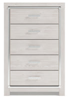 The epitome of fashion-forward design, this chest of drawers is a beautiful blend of style and luxury. Shiny chrome-tone accents, a pearlized finish and mosiac pulls bring a glam touch to the richly rustic appearance. Five smooth-gliding drawers provide plenty of storage space for your wardrobe needs.