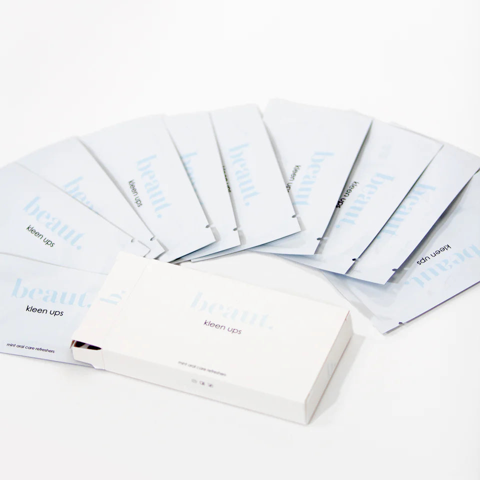 - Kleen Ups are mint oral care refreshers that come in a pack of 10