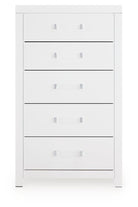 For those with a penchant for modern glamour, this chest of drawers reflects your upscale taste. It’s dressed in a sleek matte finish, with acrylic and chrome-tone hardware incorporating a subtle shine. Smooth-gliding drawers tuck away clothes and other essentials in style.