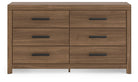 With its rich, warm finish over replicated wood grain, this casually cozy dresser evokes the tranquil vibe you long for in your dream destination. Both functional and versatile, its six roomy drawers with large-scale handles offer easy access to hidden storage for cozy sweaters, casual tees and so much more.