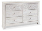 Paxberry - Six Drawer Dresser - Medallion Drawer Pulls - Whitewash
