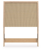 Clean-lined and contemporary—but far from stark—this full panel headboard is a fresh style awakening. Pairing a light finish with replicated oak grain and a textured panel that replicates the look of cane, its mixed materials bring a naturally versatile vibe to your bedroom. Talk about style with added dimension. Its simplicity plays perfectly with the modern aesthetic and is the stuff dreams are made of.