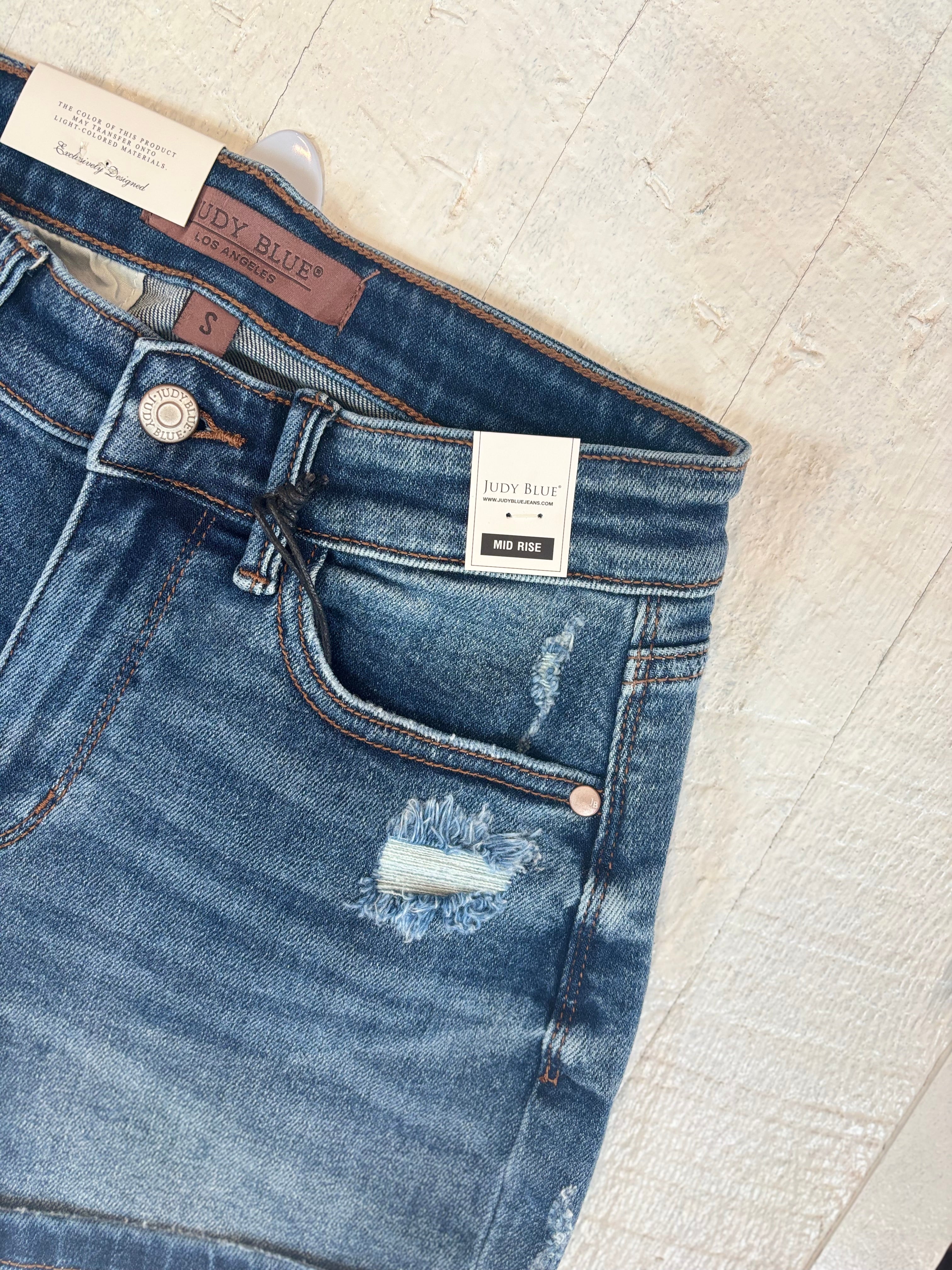 Judy Blue Mid-Rise Dad Short w/ Destroy