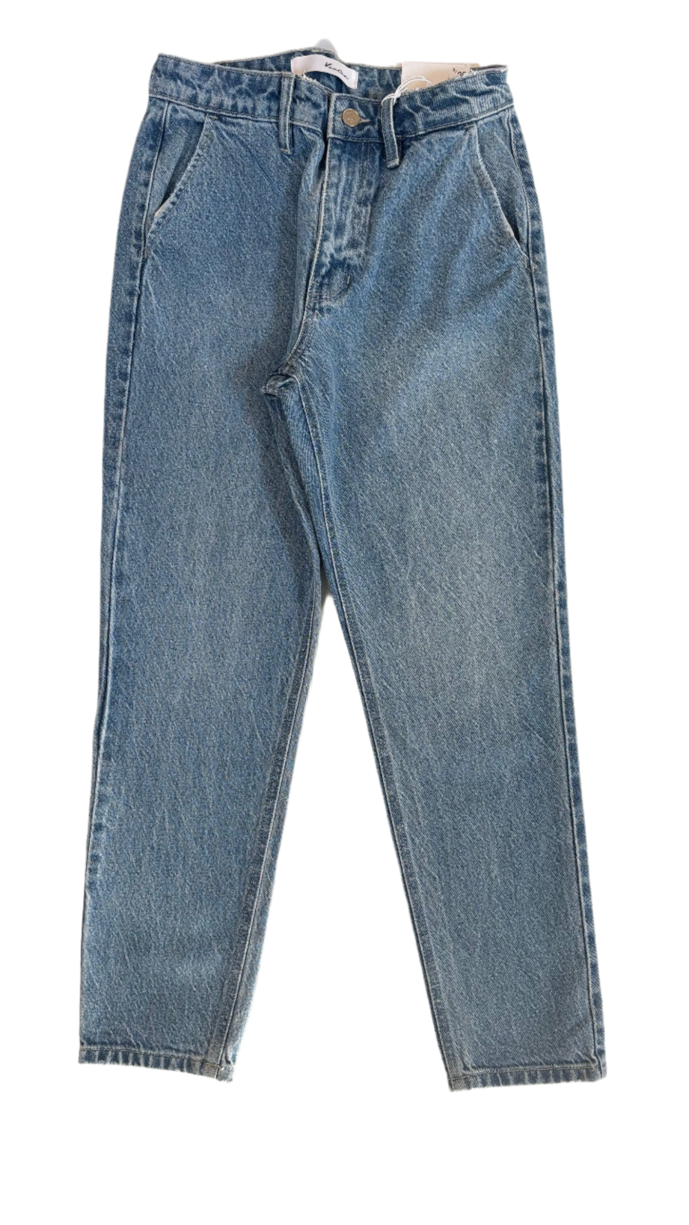 These high rise mom fit denim jeans will make your outfit POP with their medium stone wash and rigid construction. Keep your valuables safe with the extra slant pockets and back dart, and close up with the trusty zipper fly. Join the mom fit denim craze and get yours today!