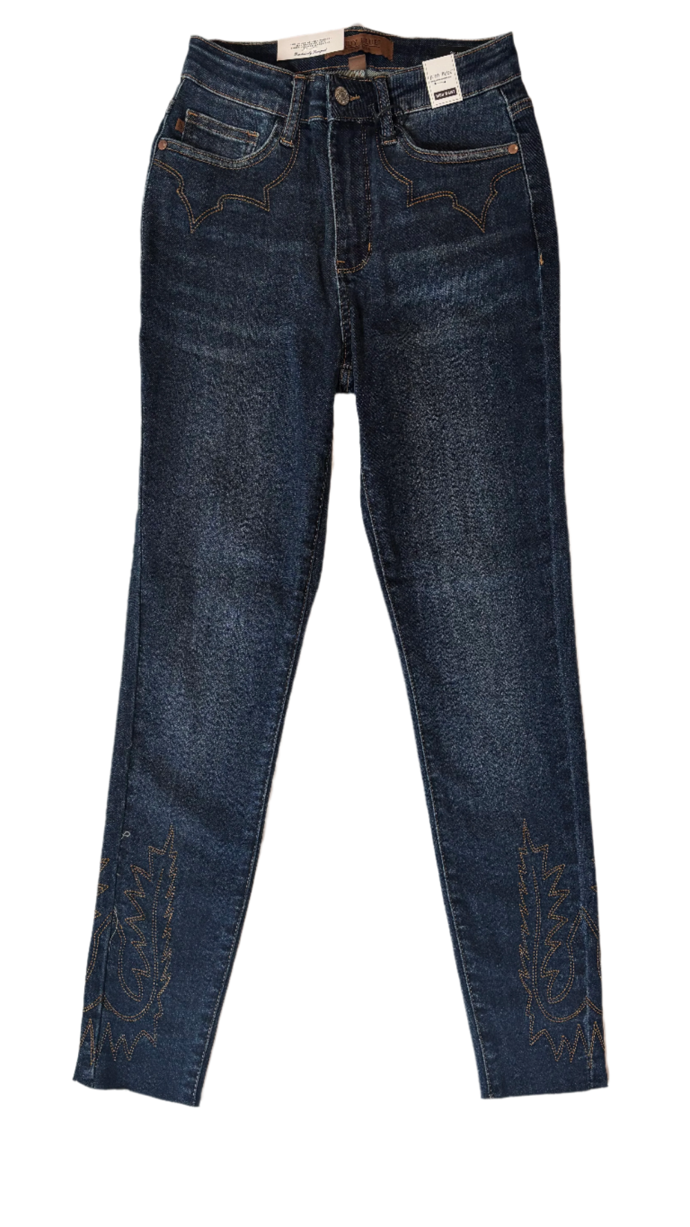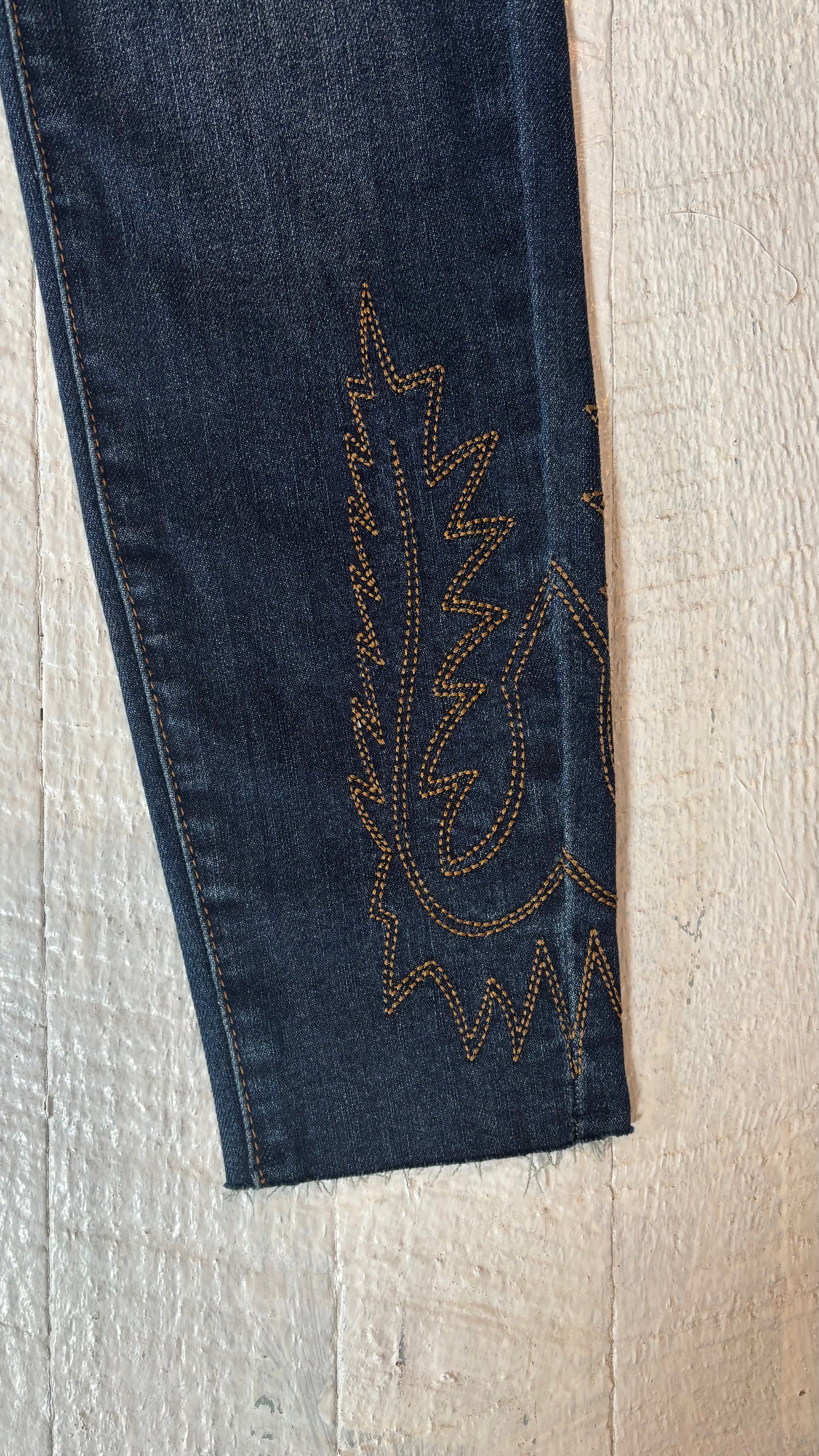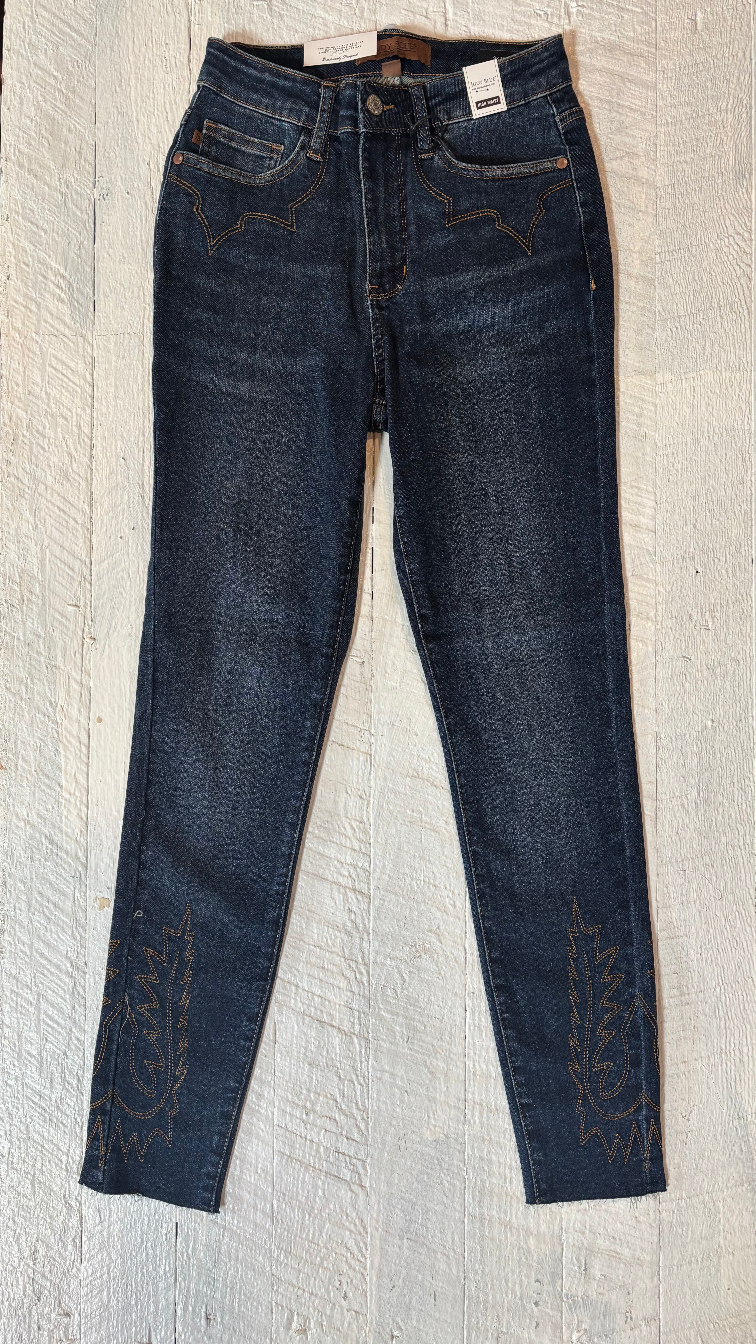 - With a flattering high waist and unique embroidery details, these skinnies will make any outfit stand out