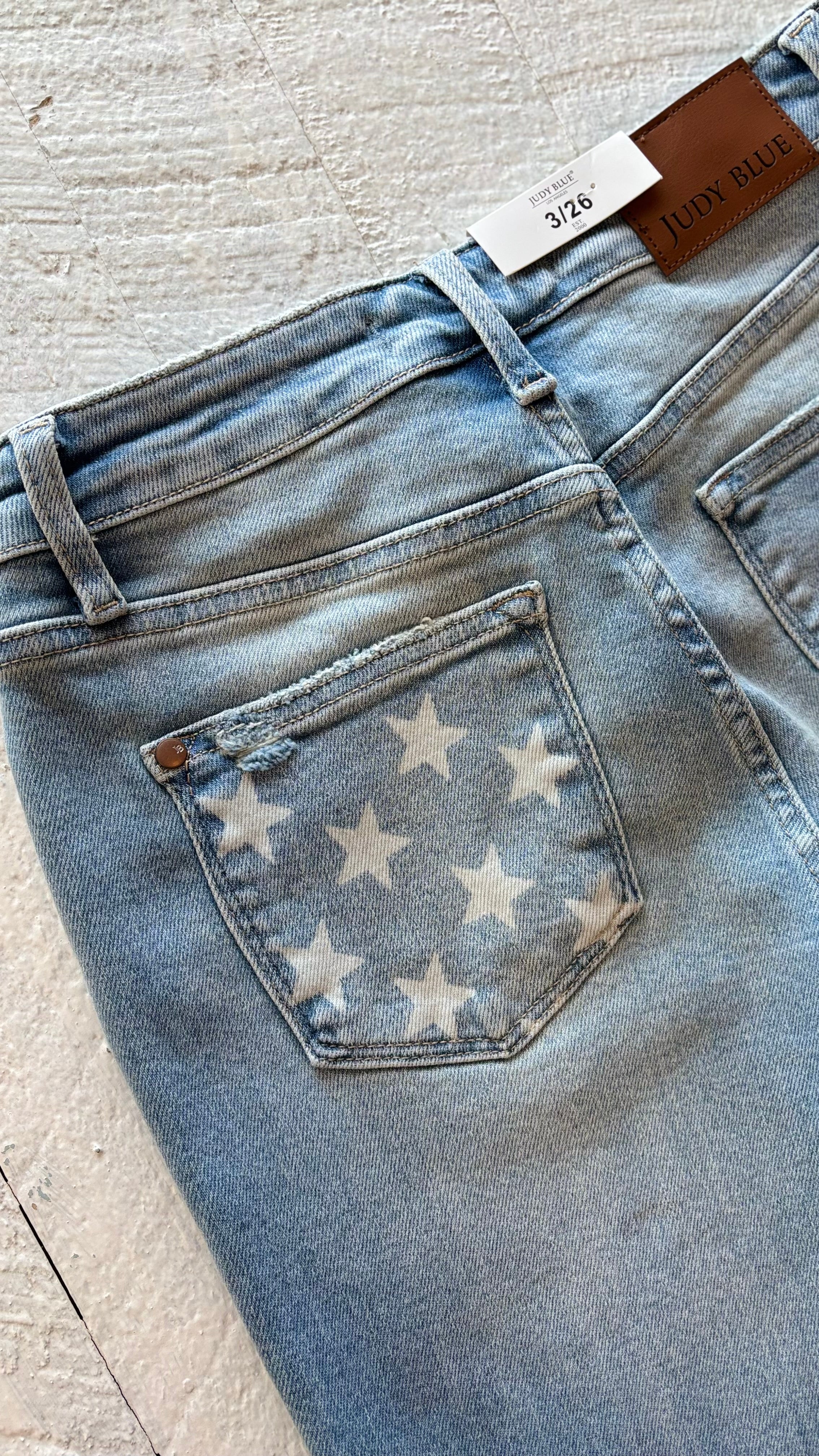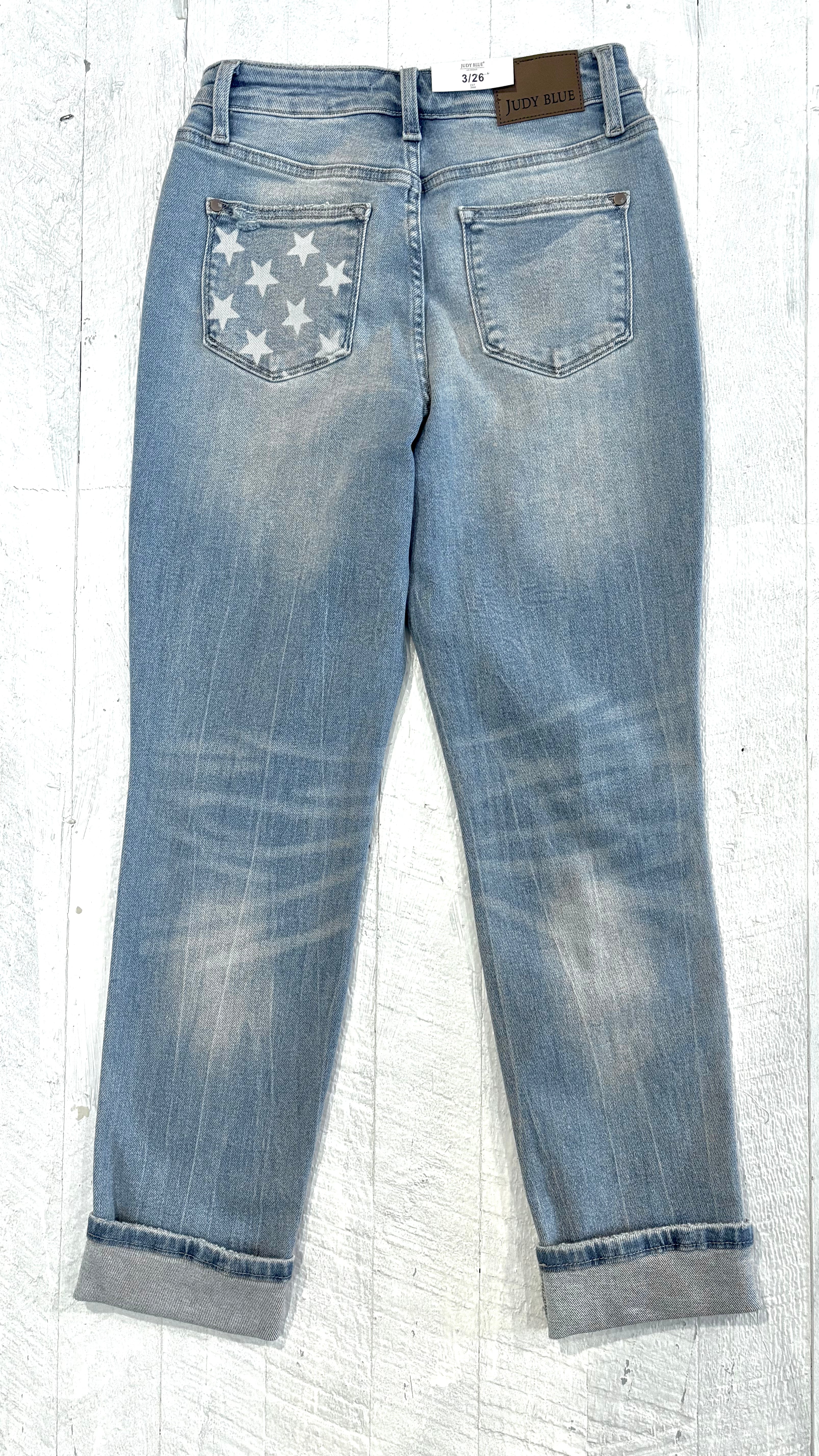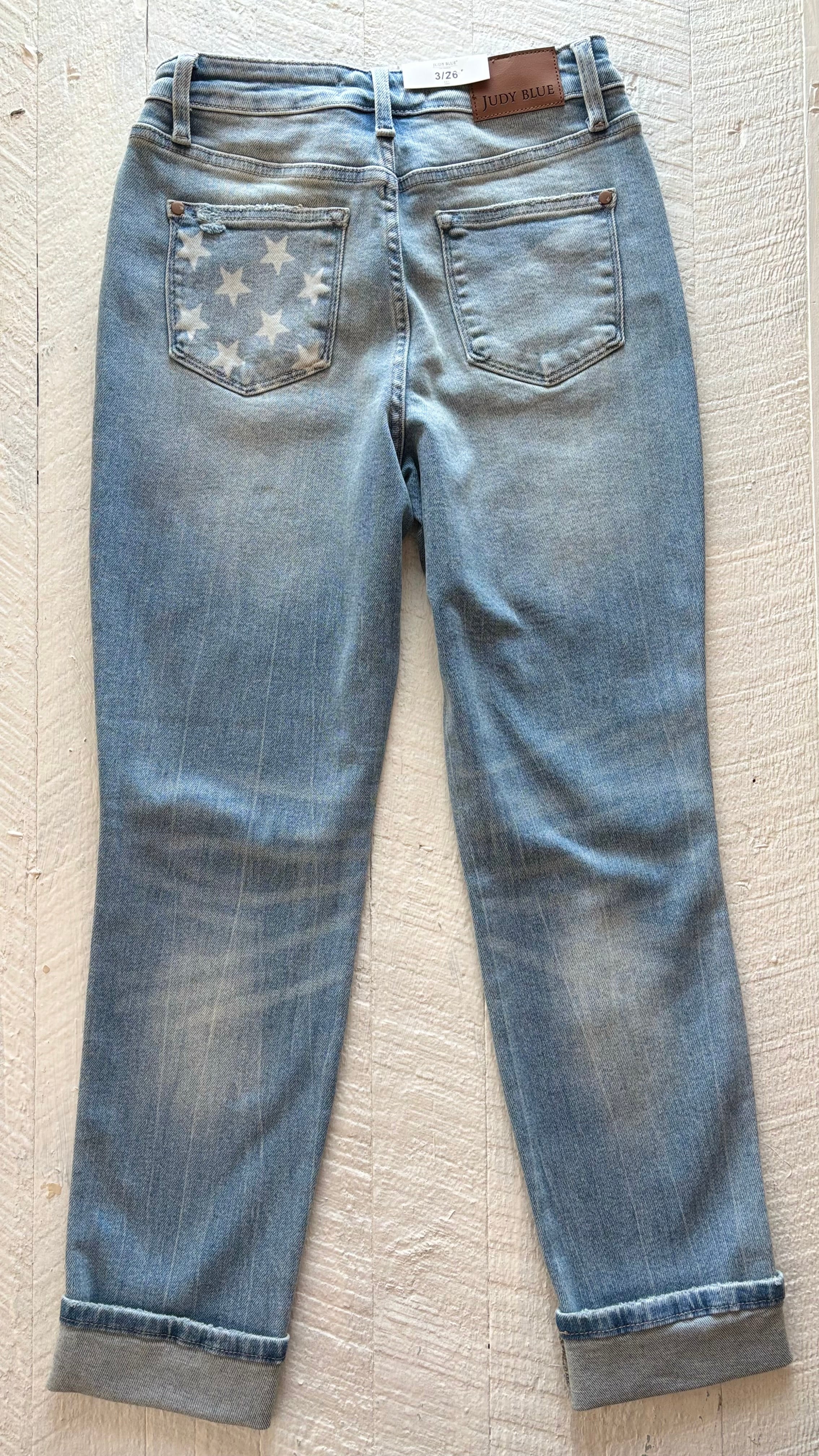 Judy Blue Mid Rise Americana Flag Pocket Cuffed Jeans