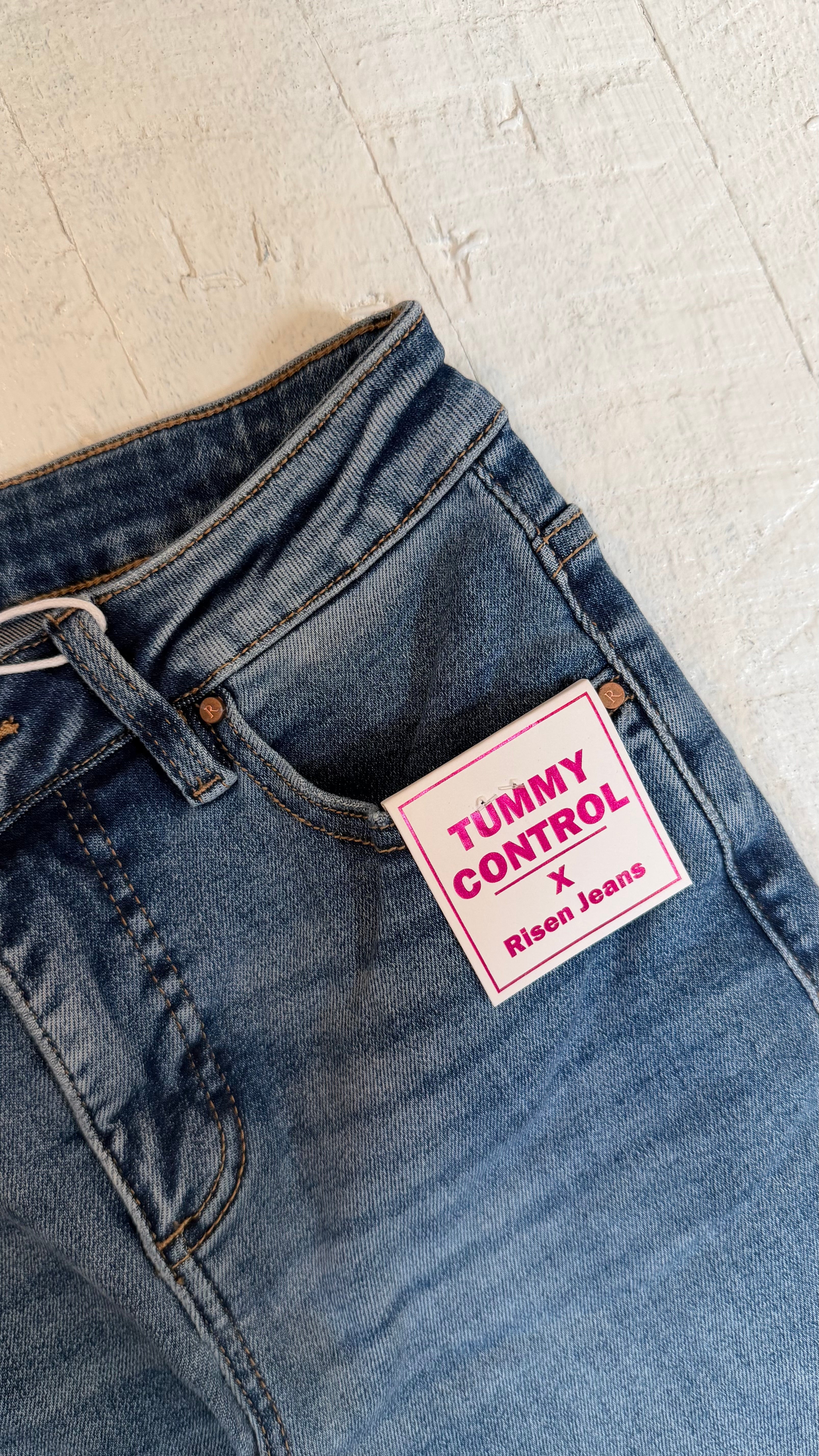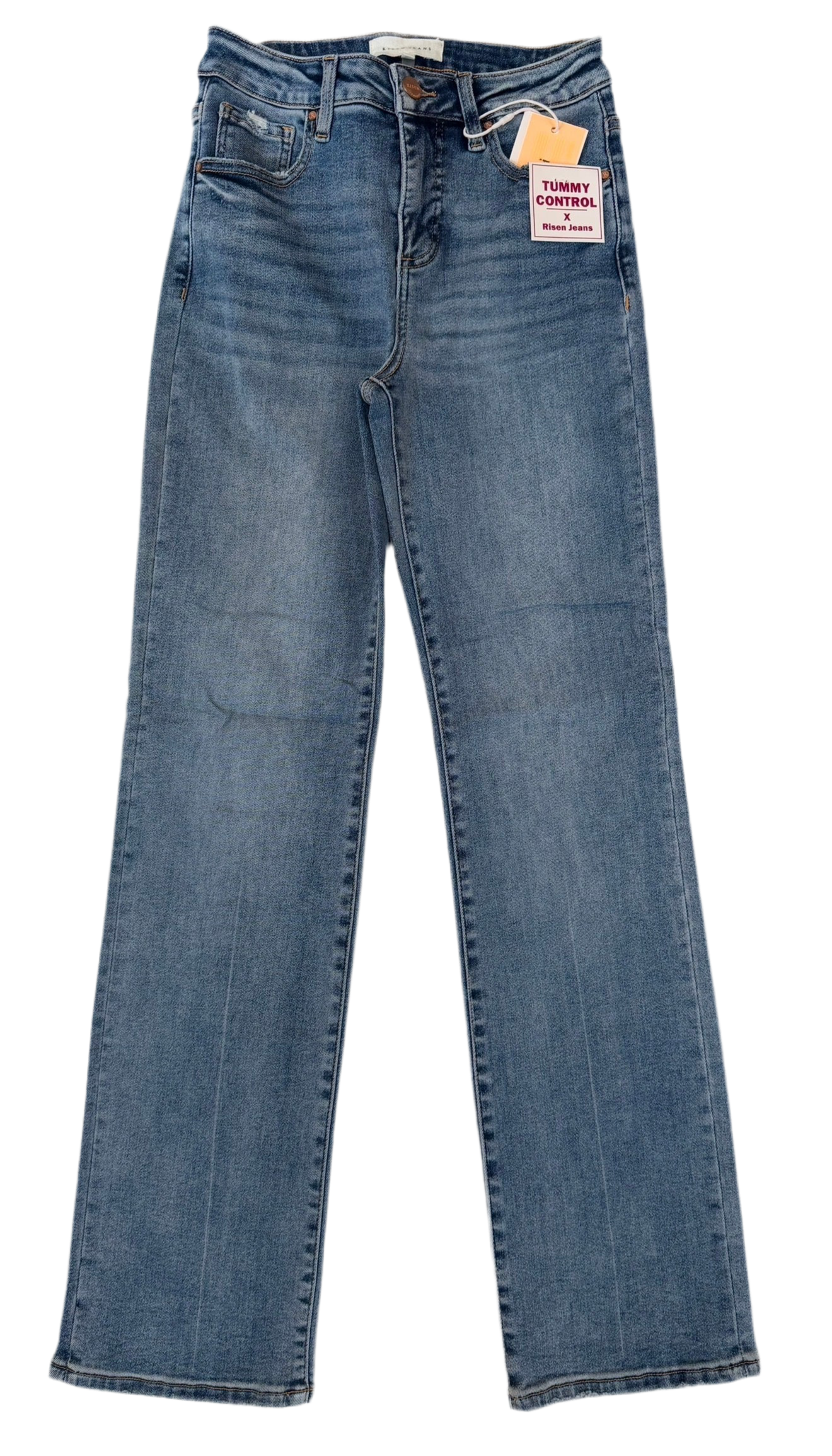 - The Risen Tummy Control High Rise Straight Jeans offer a tailored fit with expert design focused on comfort and shape-enhancement