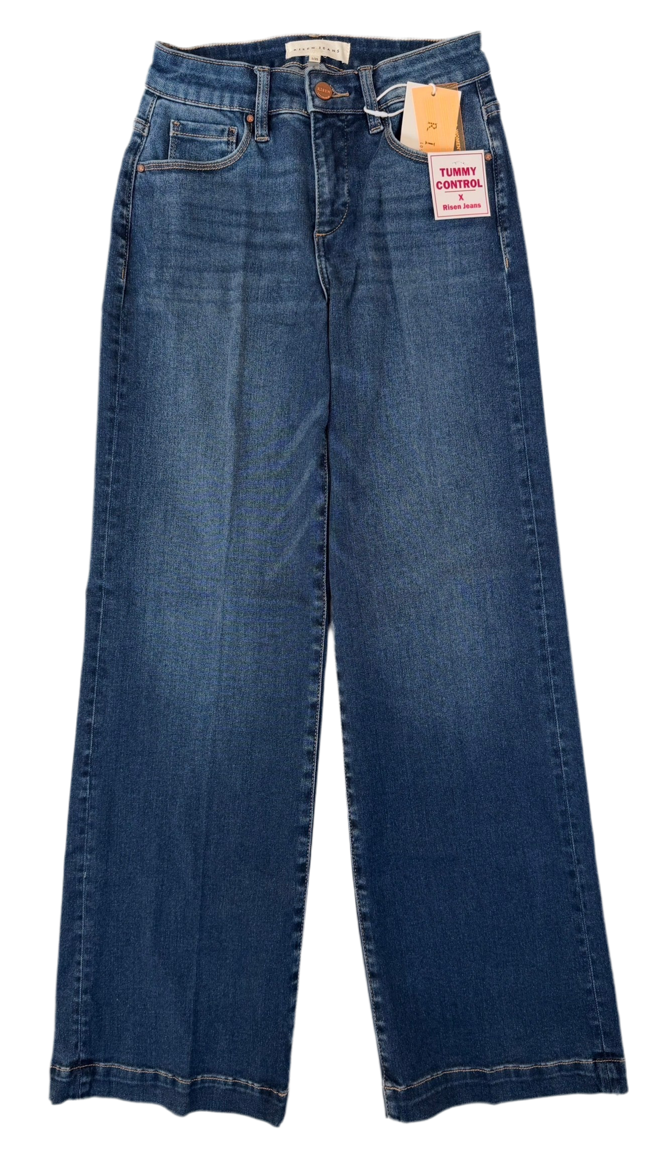 - Experience exceptional fit and comfort with the Risen Tummy Control Mid Rise Wide Iron Press Line Detail pants