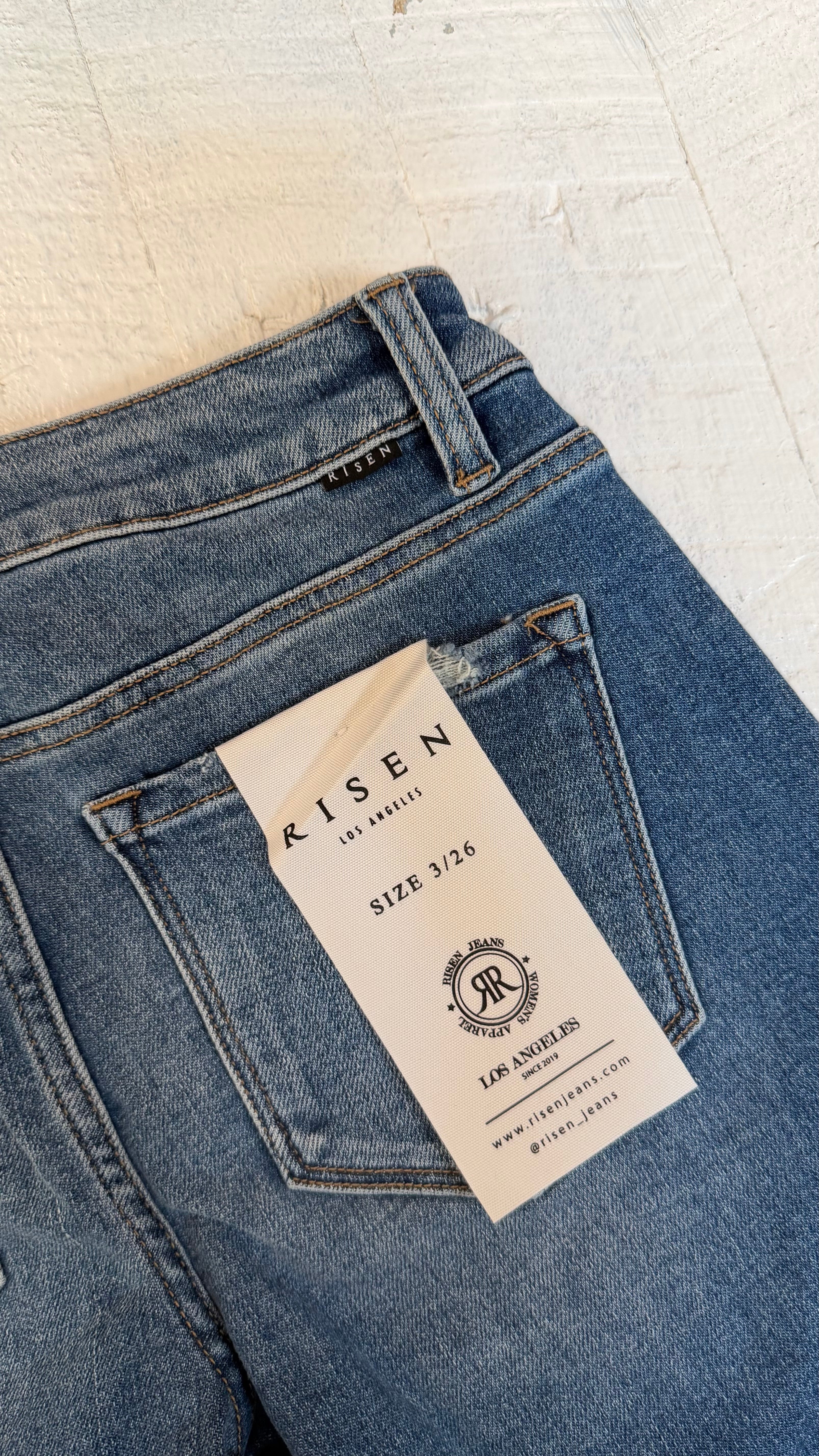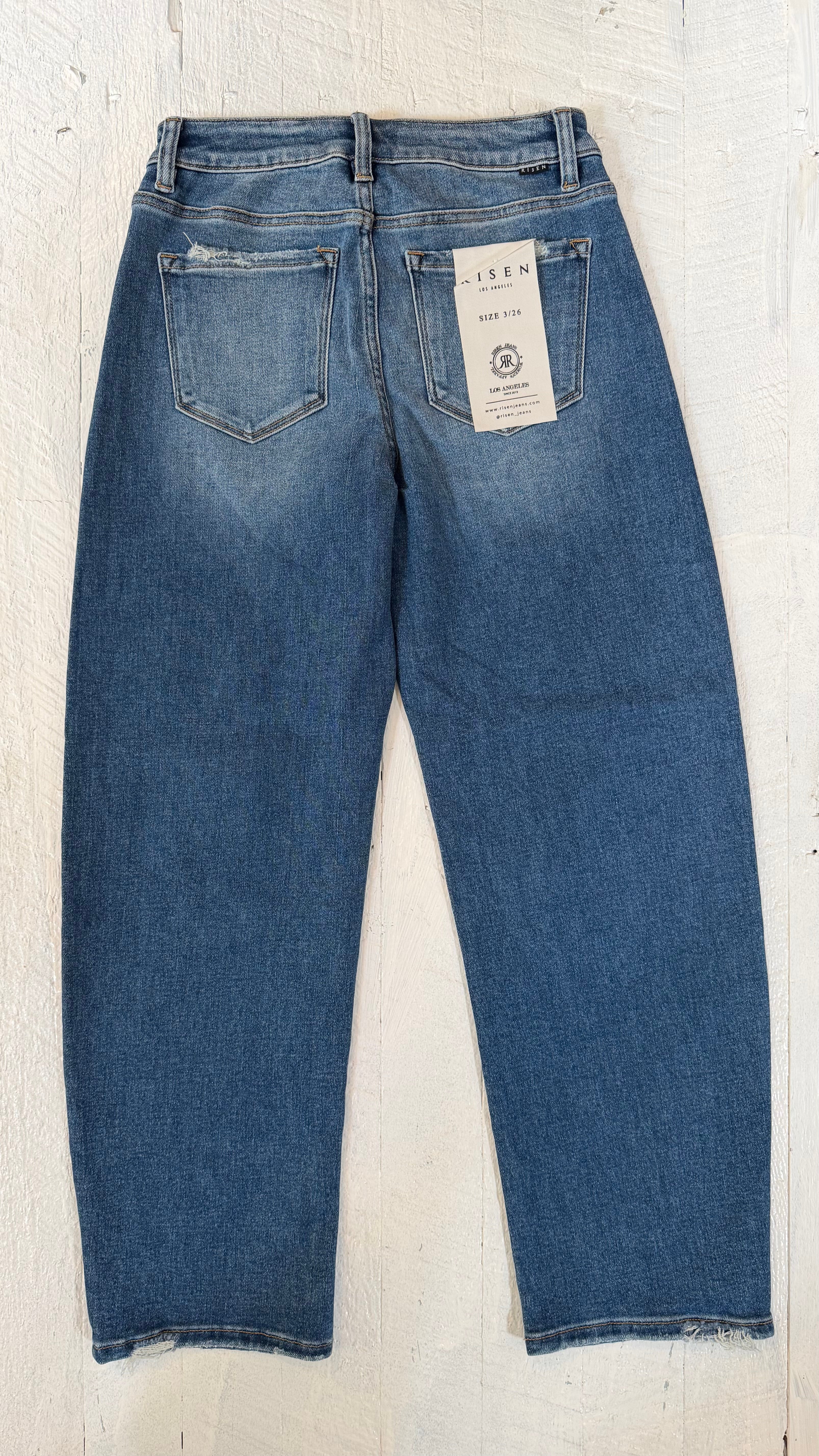 Risen Tummy Control High Rise Ankle Slim Barrel Jeans