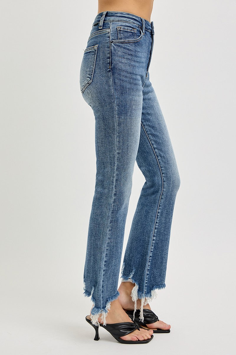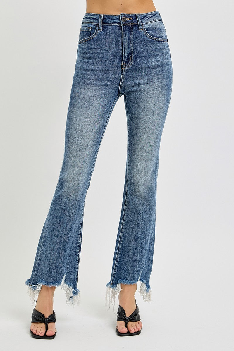 Risen High-Rise Crop Flare Frayed Hem Jeans