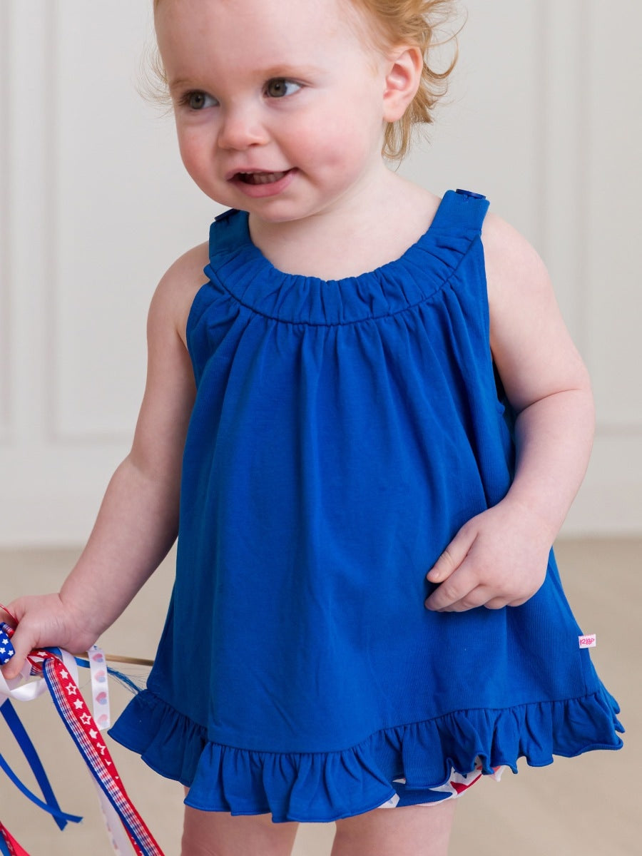 Ruffle Butts Star-Spangled Knit Swing Top and Bloomer Set | Blue