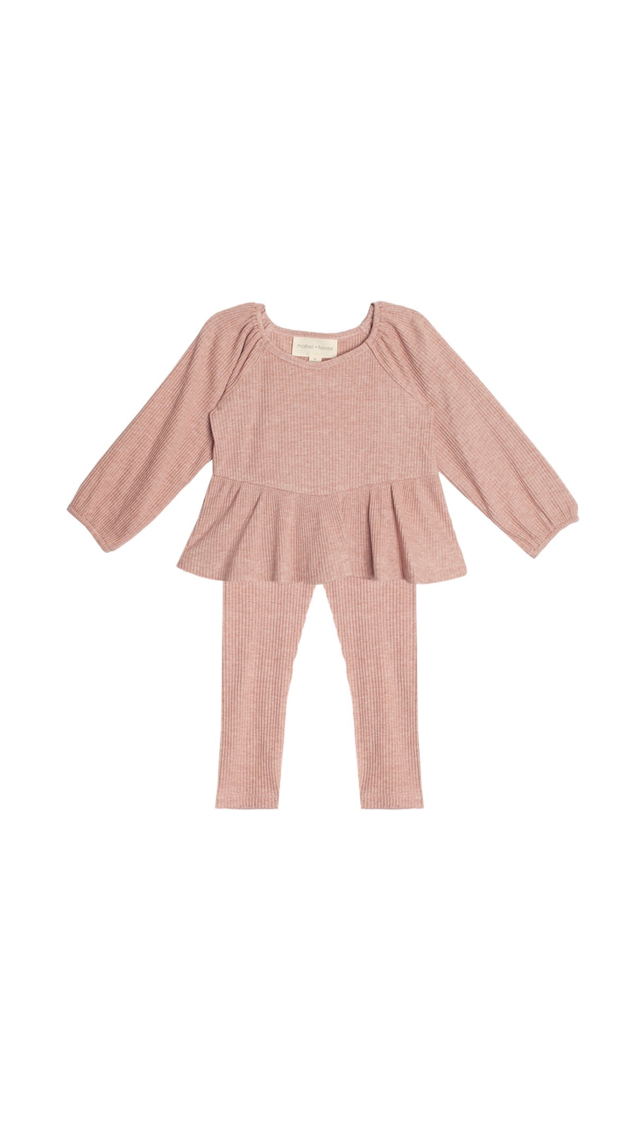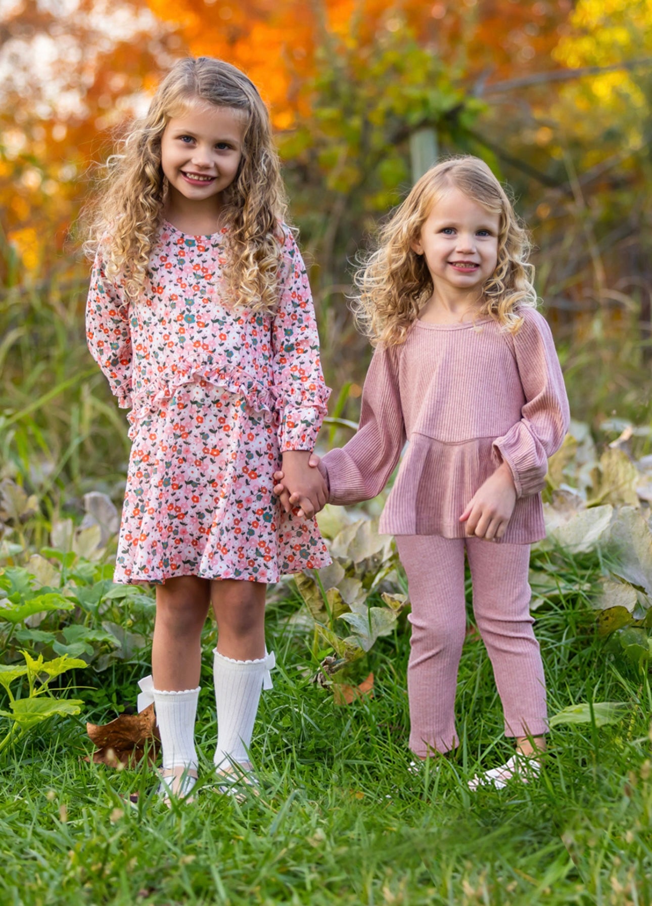 Get ready to adore this 2 piece set in playful pink hues! Featuring a cozy, long sleeve babydoll top and matching leggings, your little one will be cute and comfortable all day long. Perfect for any occasion, this set will win over hearts and style points for your mini fashionista!