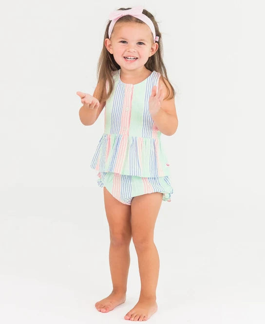 Button Up Swing Top and Bloomer Set - Multi Color Seersucker