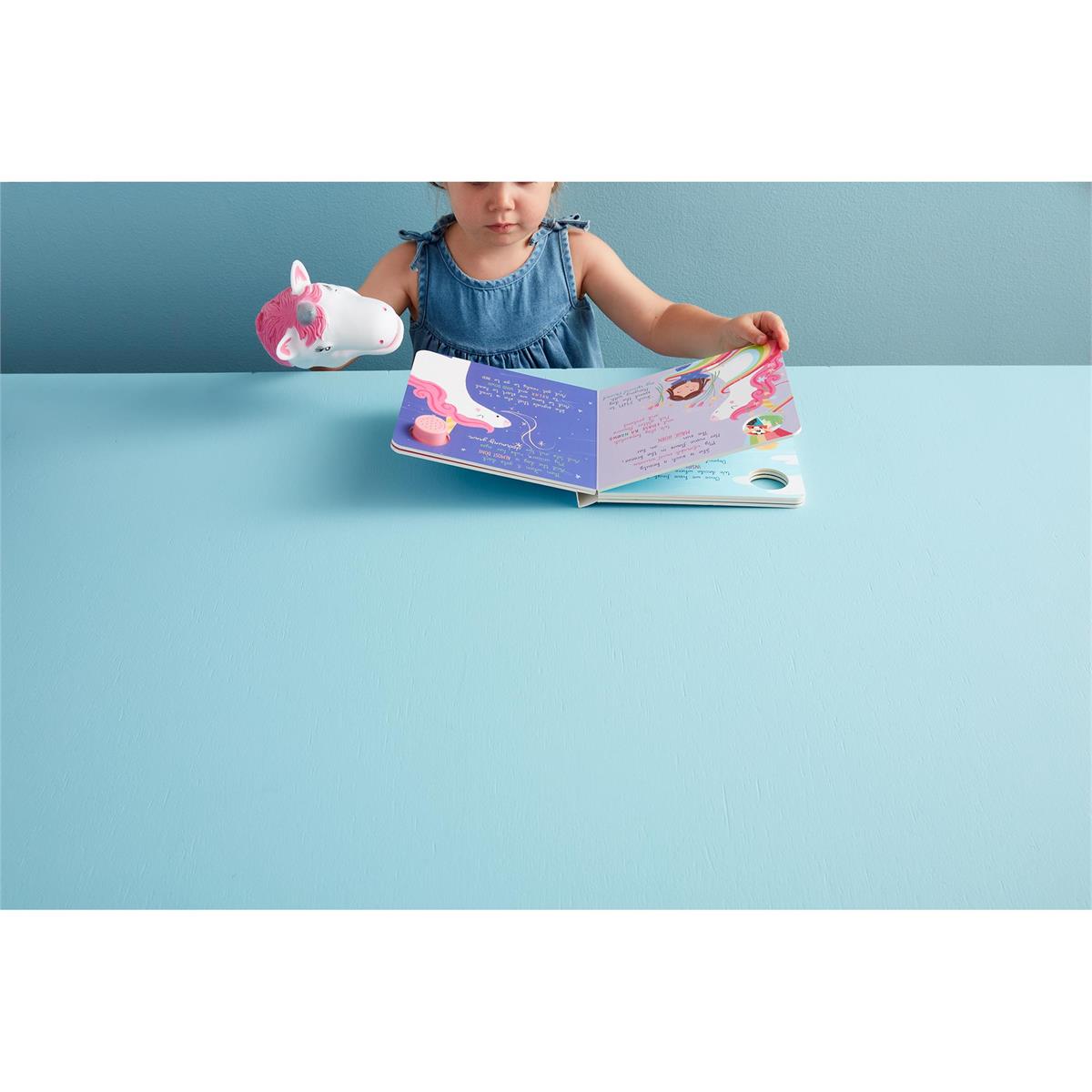 Discover the enchanting world of unicorns with My Best Friend Is A Unicorn Book! This board book for kids features a dimensional soft rubber hand puppet and a "magical" sound button on the front cover. Spark your child's imagination and bring the story to life in a magical way!