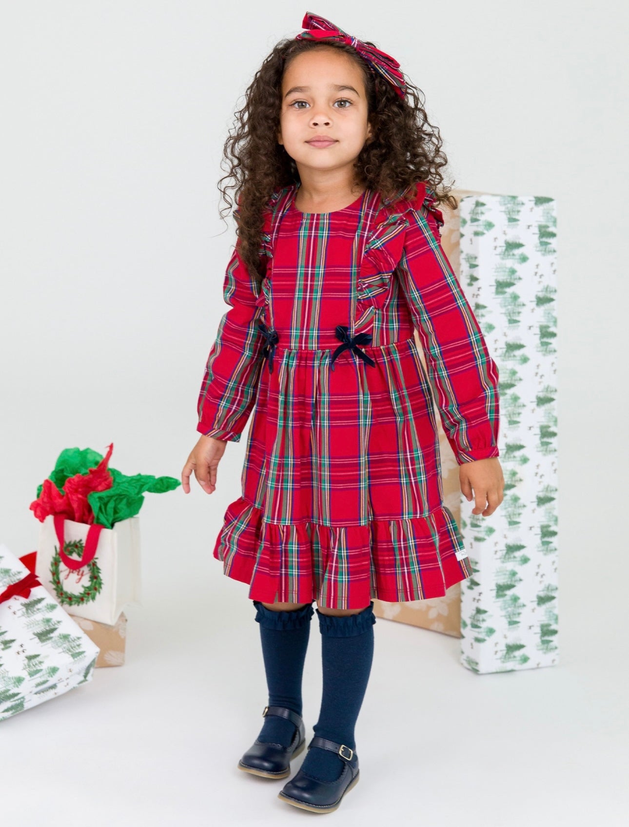 'Tis the season for style with this playful Ruffle Bow Plaid Dress! Featuring a charming red plaid pattern and long sleeves, this pinafore dress will make your little one stand out in the best way. Whether for a holiday party or everyday wear, this dress is sure to add a touch of whimsy to any occasion!