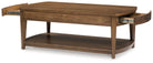 Serving up transitional style at its best, this striking coffee table looks equally at home in traditional and modern settings. Its classic finish merges effortlessly with a softly rounded top and tapered legs for a timeless, contemporary vibe. A lower shelf beautifully accommodates baskets, magazines, plants and more, while two end drawers keep entertainment essentials close by.