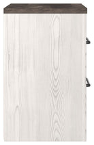 Cool, clean and casually modern. This nightstand's wispy whitewash and gray finish sets the tone for your calming sanctuary. Large linear pulls add dimension and authenticity. Two smooth-gliding drawers neatly accommodate your bedside needs.