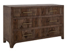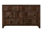 6 Drawer, Dresser. Transform your space with this modern bedroom set. Crafted from engineered teak and sustainable mango wood, this collection combines lasting durability with natural beauty. The rich brown multi-step lacquer finish adds warmth and depth to the furniture. The Praga Dresser has six spacious drawers for ample storage. The aged golden handles add a touch of sophistication, while its short, sturdy legs provide balance and stability, making it a versatile addition to any space.