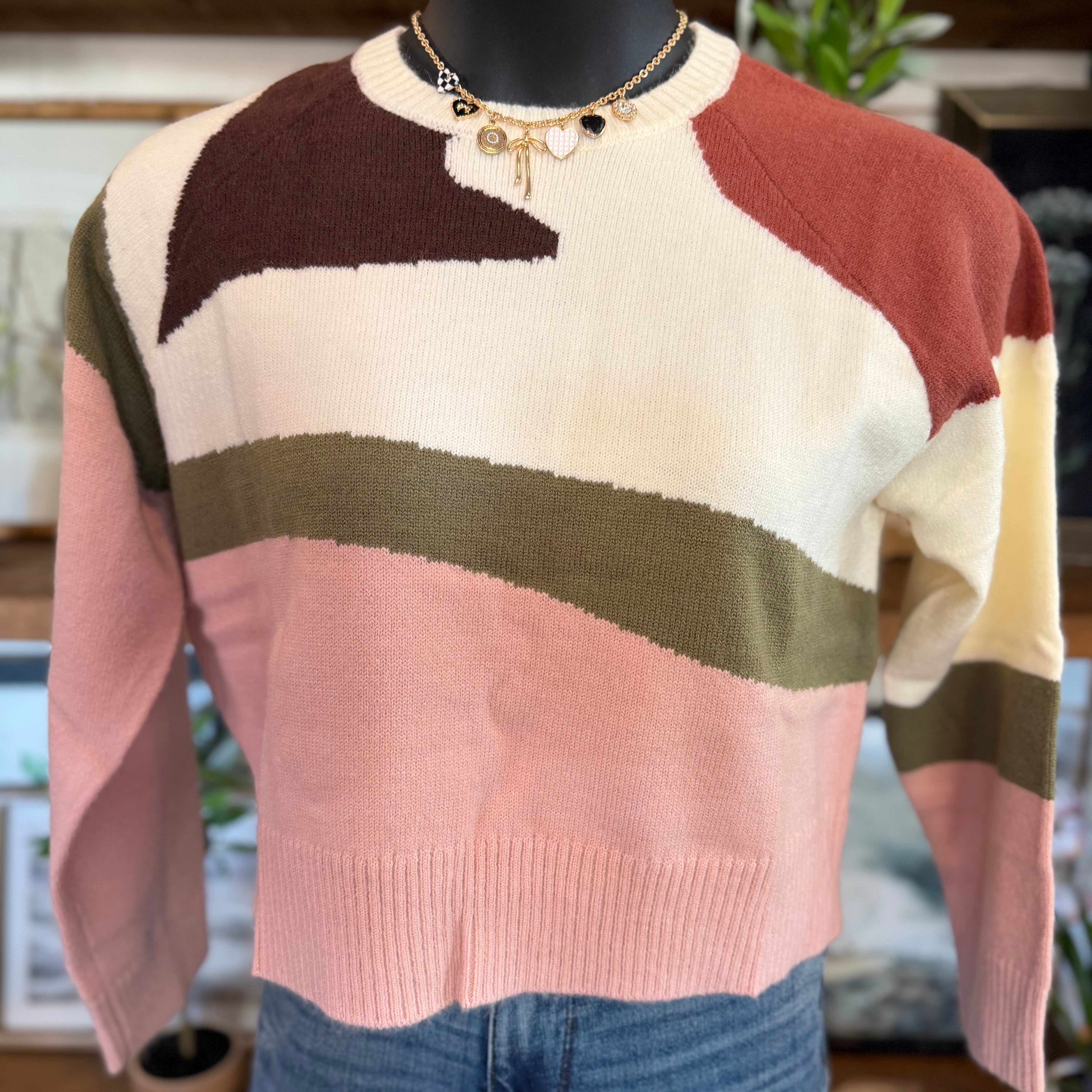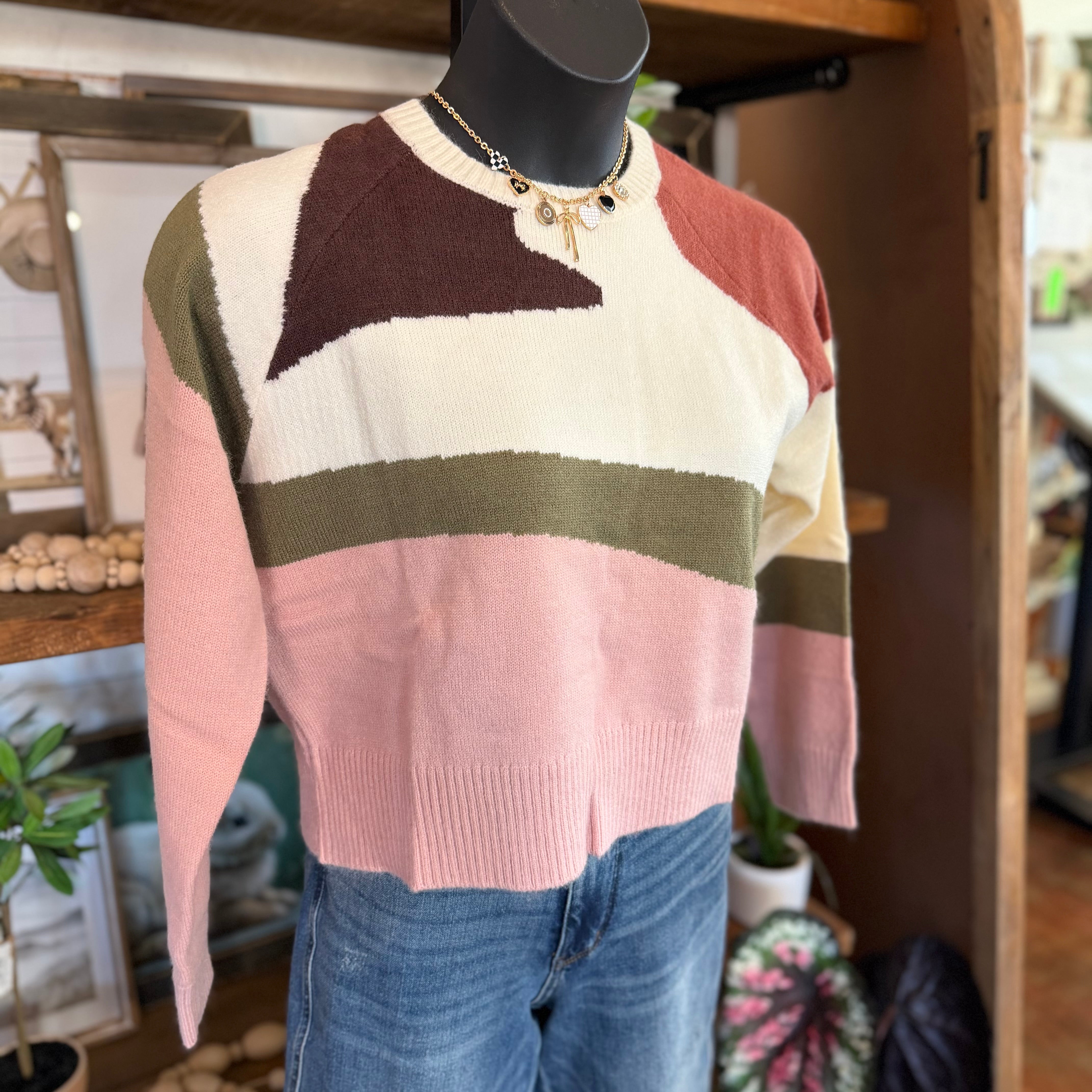 Anti-filling Color Block Sweater Top | Ivory Multi