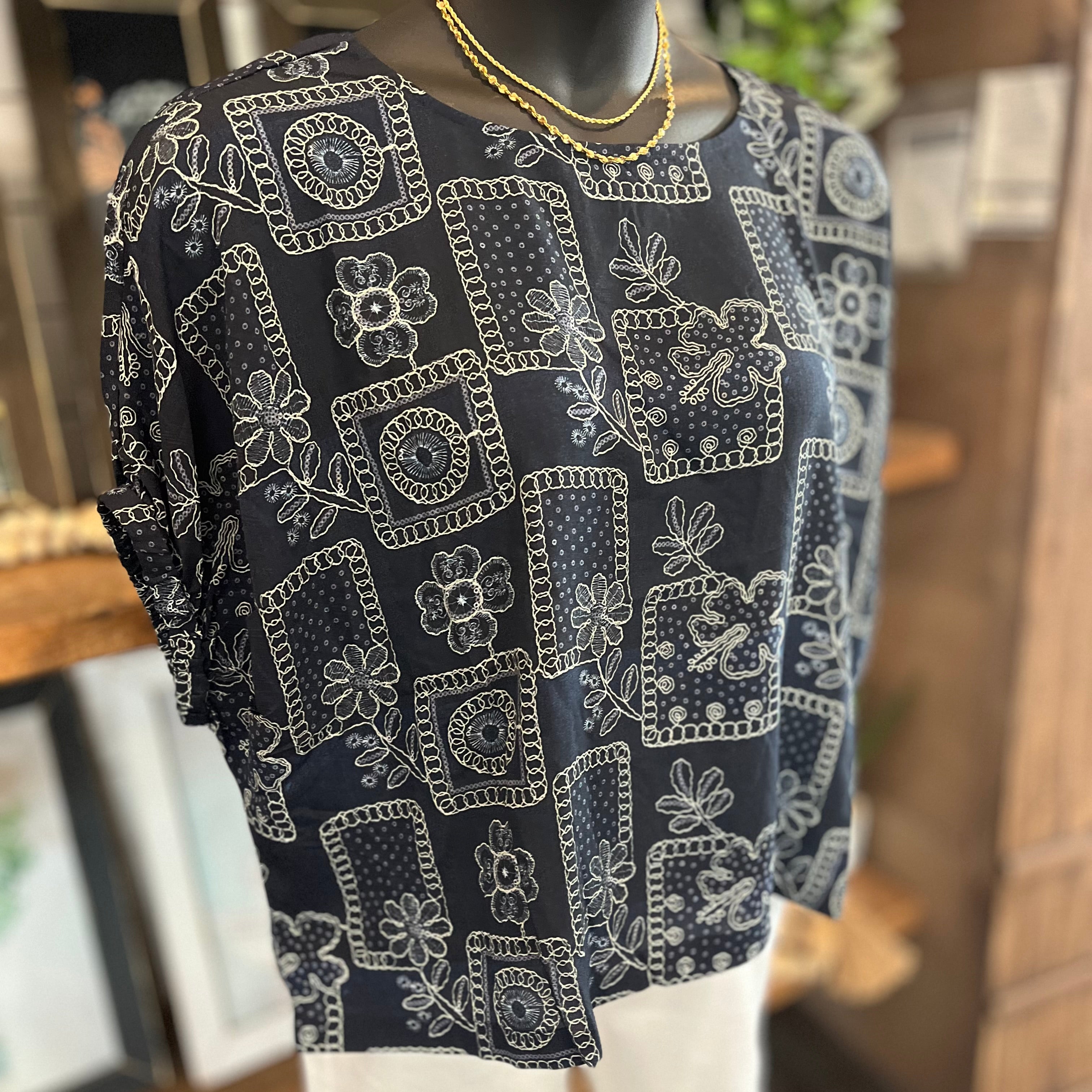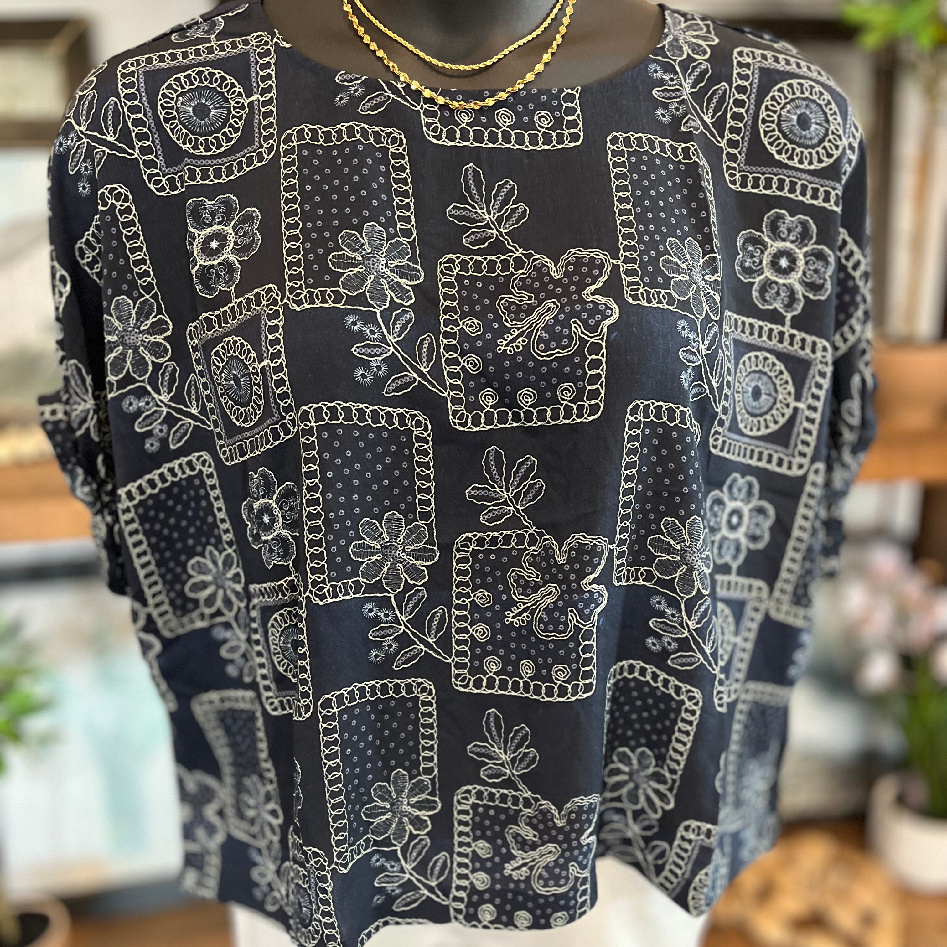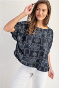 - This navy Floral Patchwork Printed Dolman Sleeve Top is the perfect blend of style and comfort