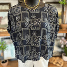 Floral Patchwork Printed Dolman Sleeve Top | Navy