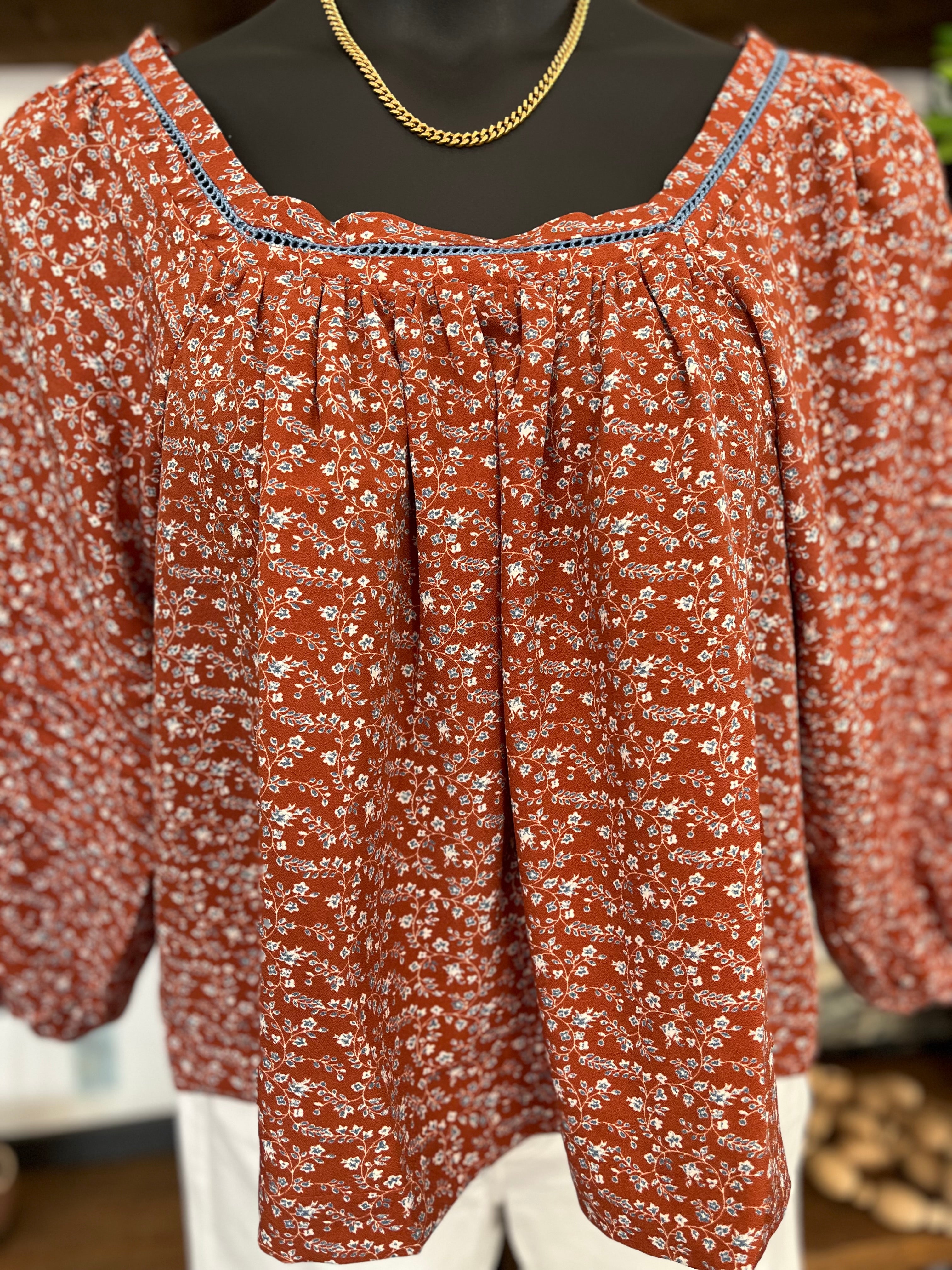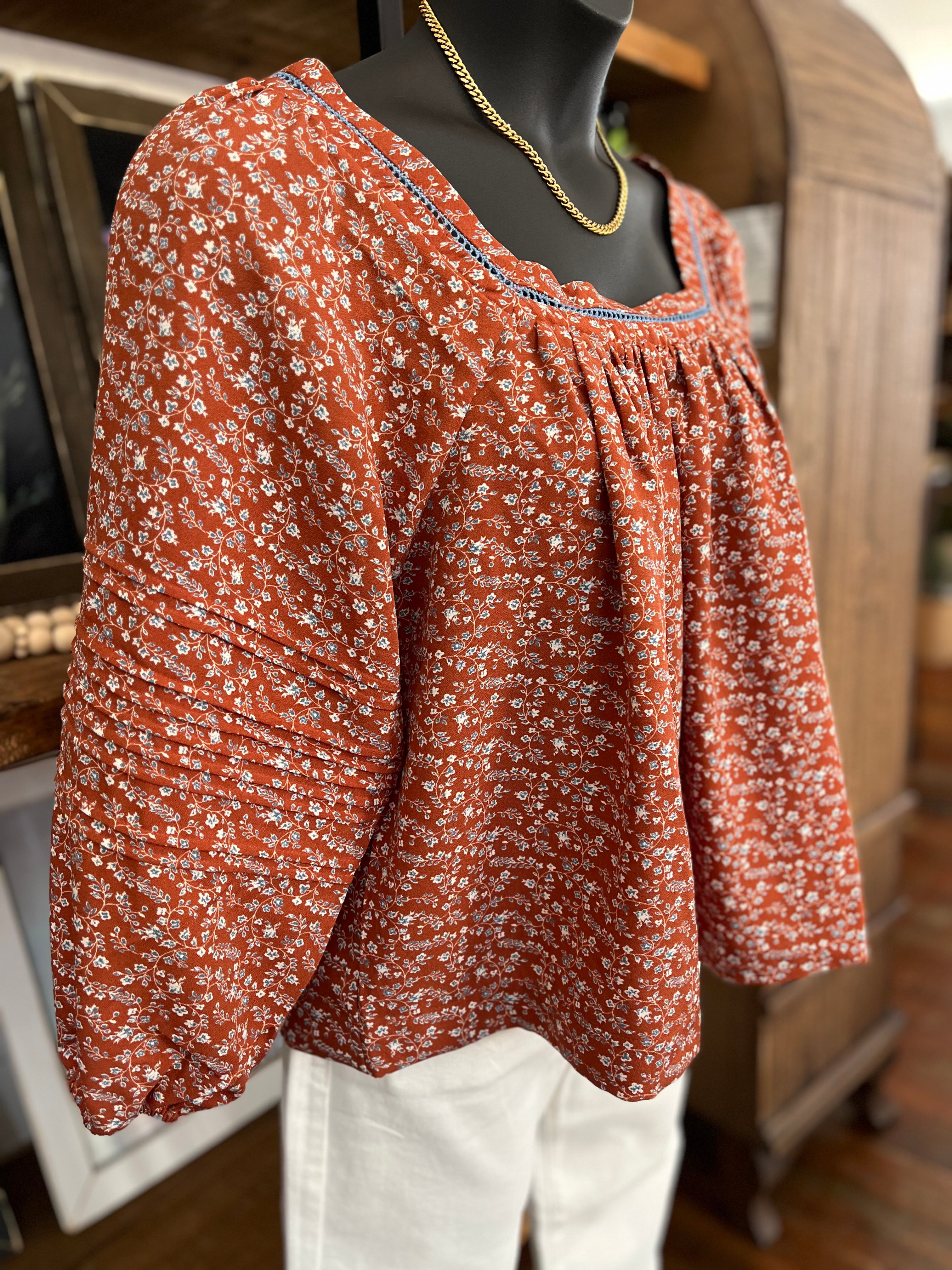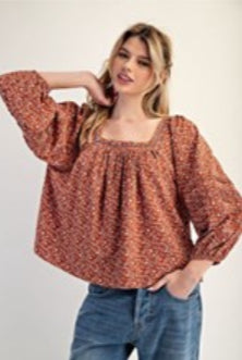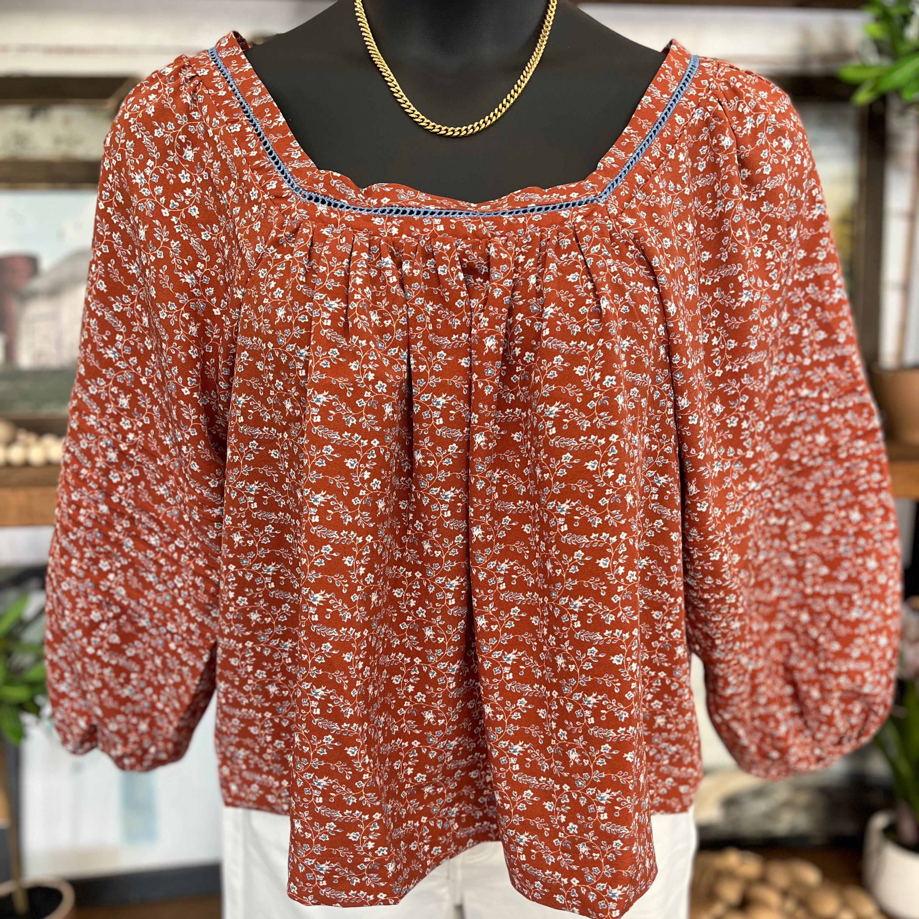 - This blouse features a beautiful floral print and a square neckline, adding a touch of elegance to your wardrobe