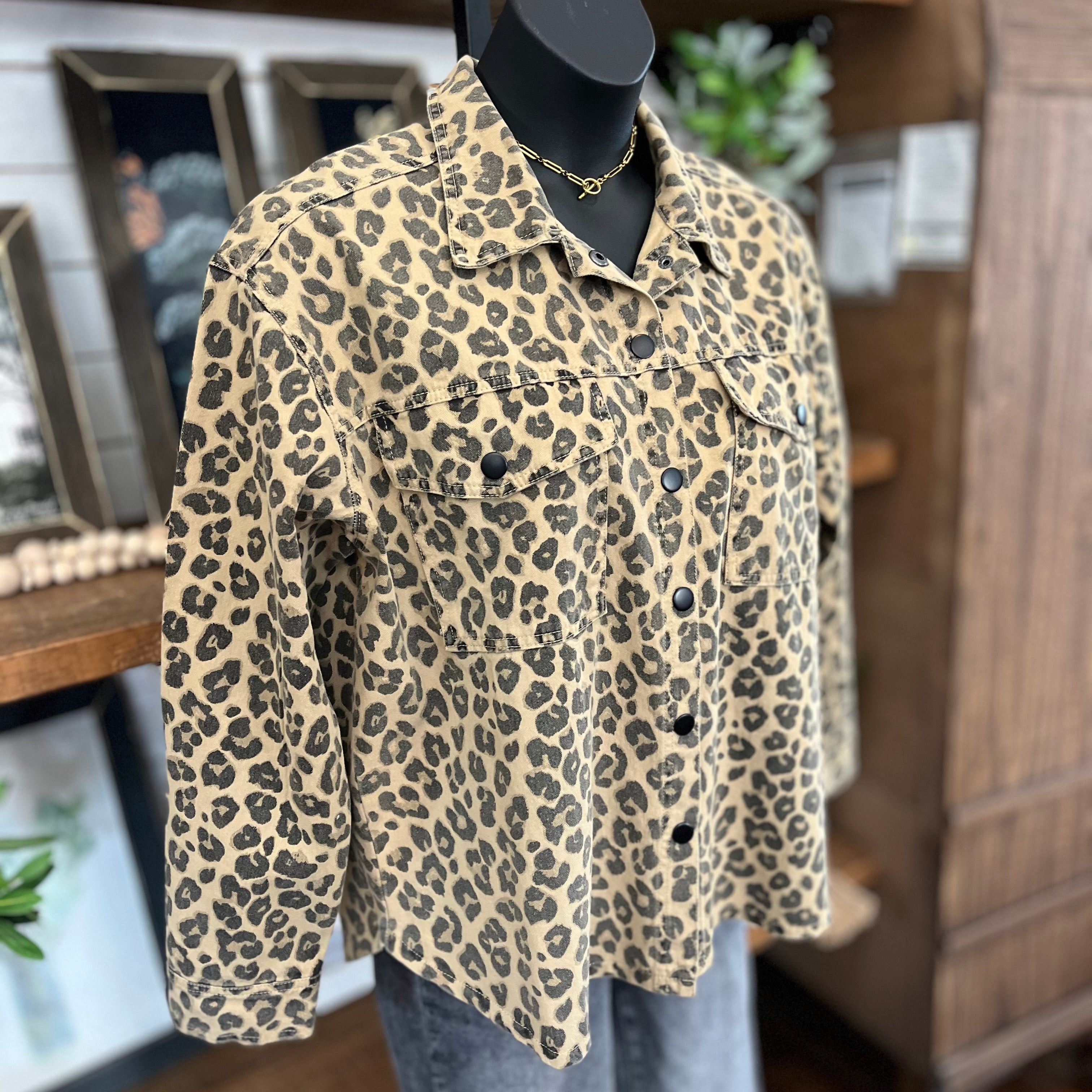 - Introducing the Leopard Print Collared Button Down Shacket in brown