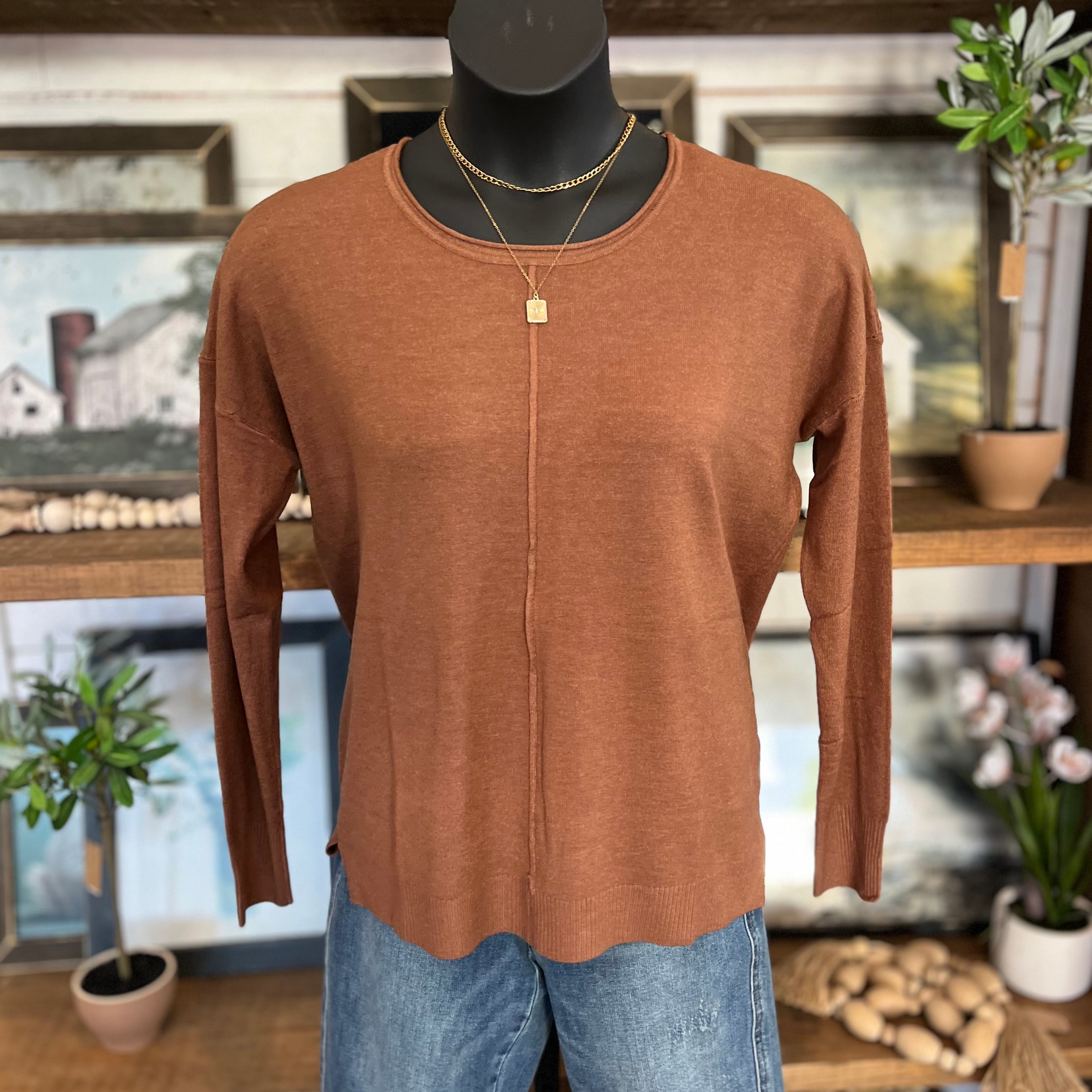 Viscose Front Seam Round-Neck Sweater | Deep Camel
