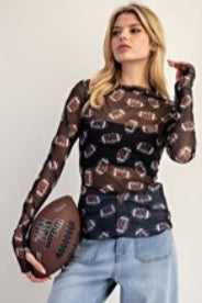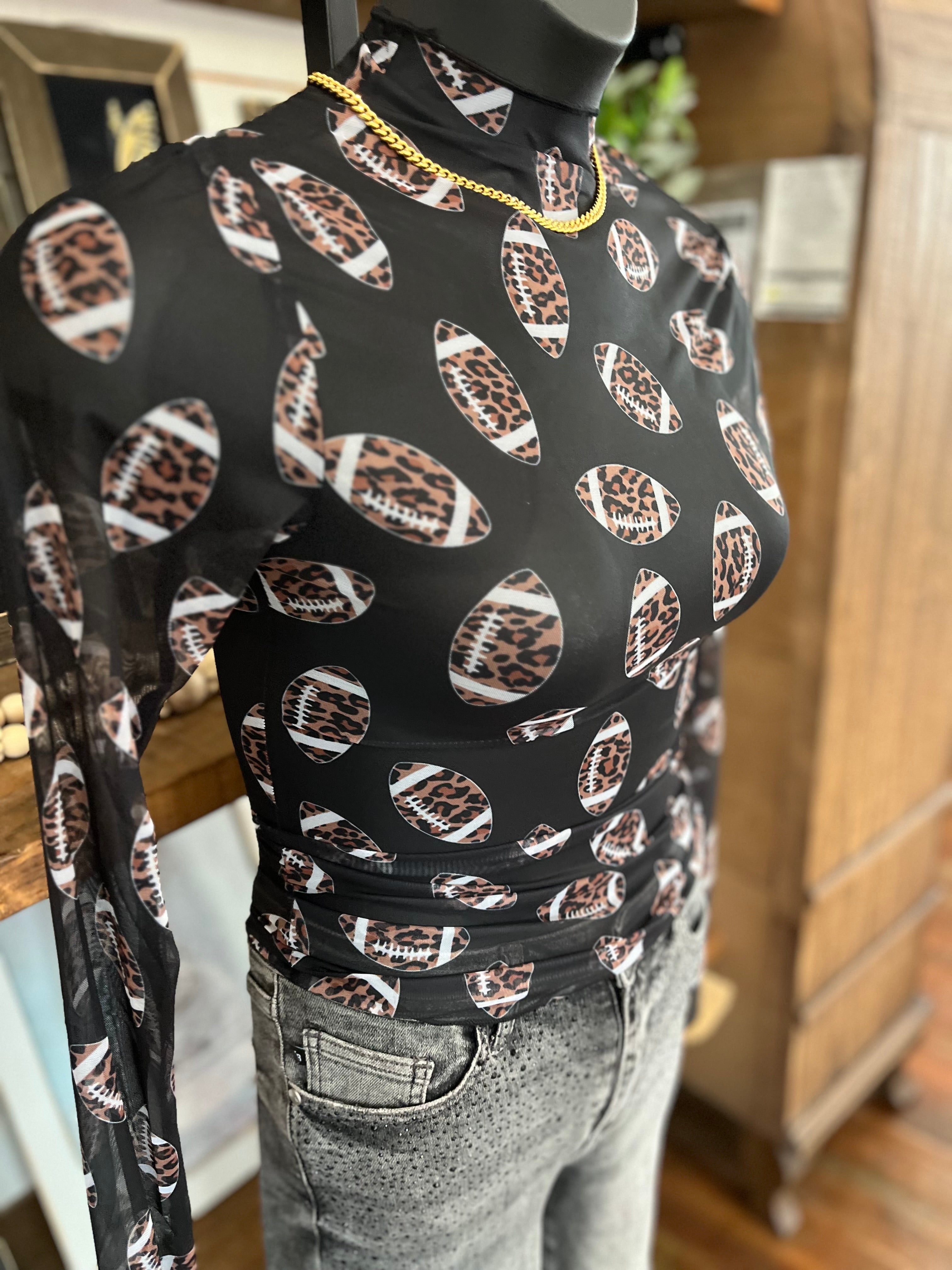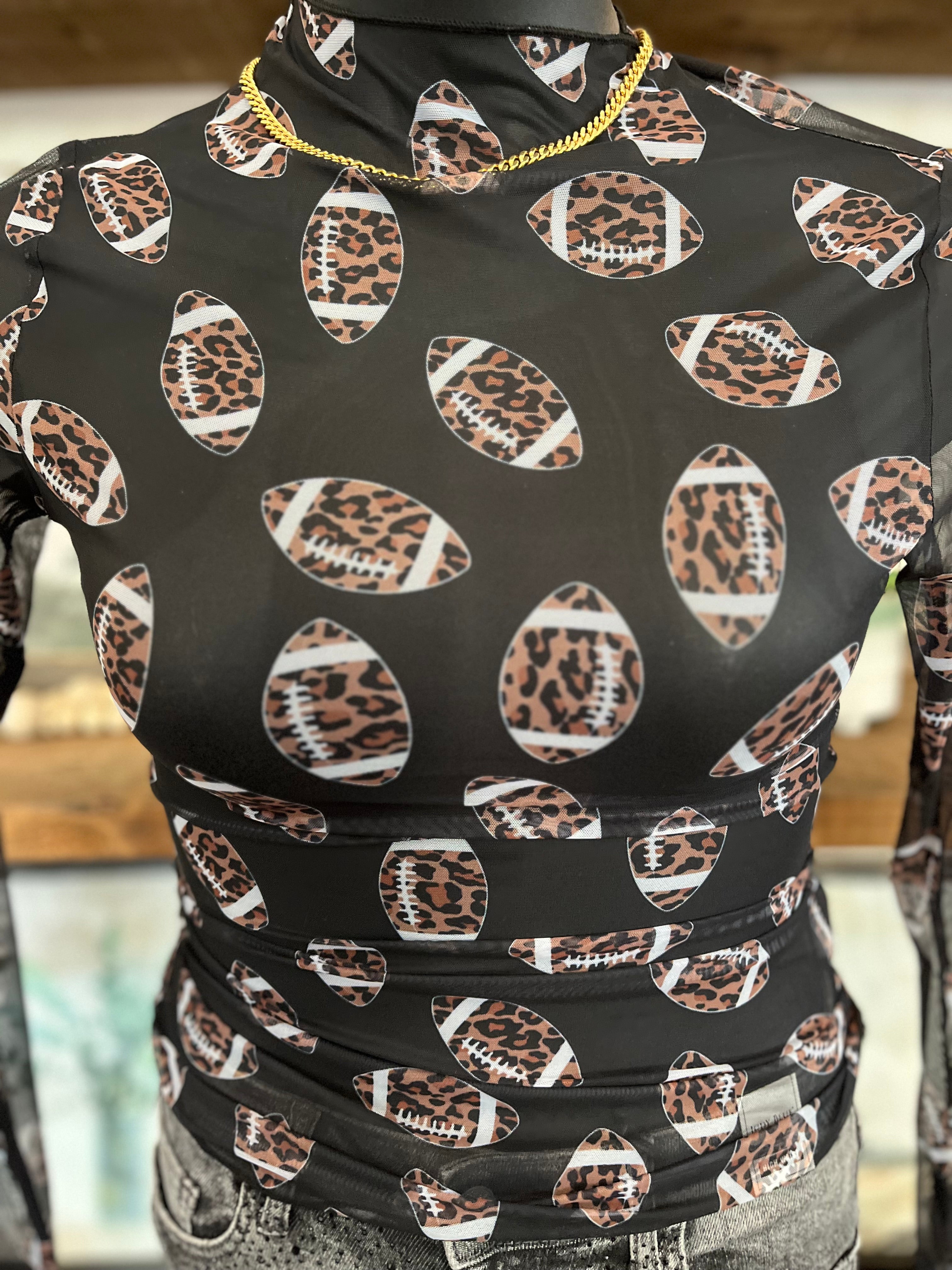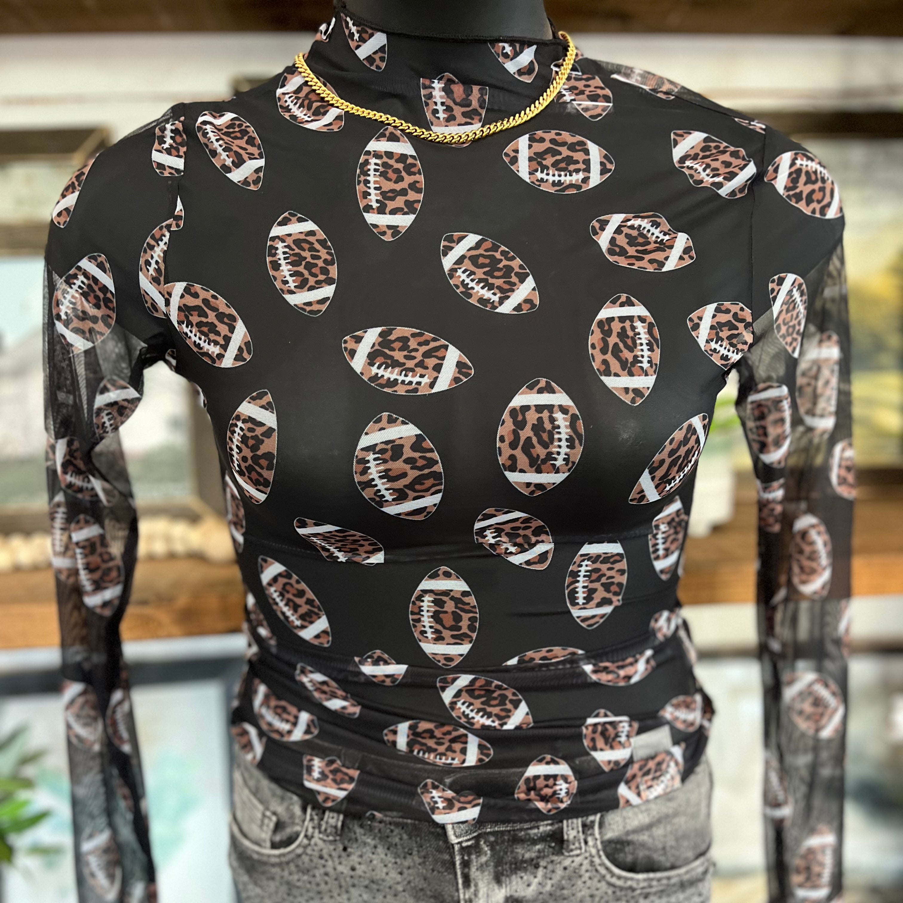 Leopard Football Printed Mesh Layering Top | Clash Black