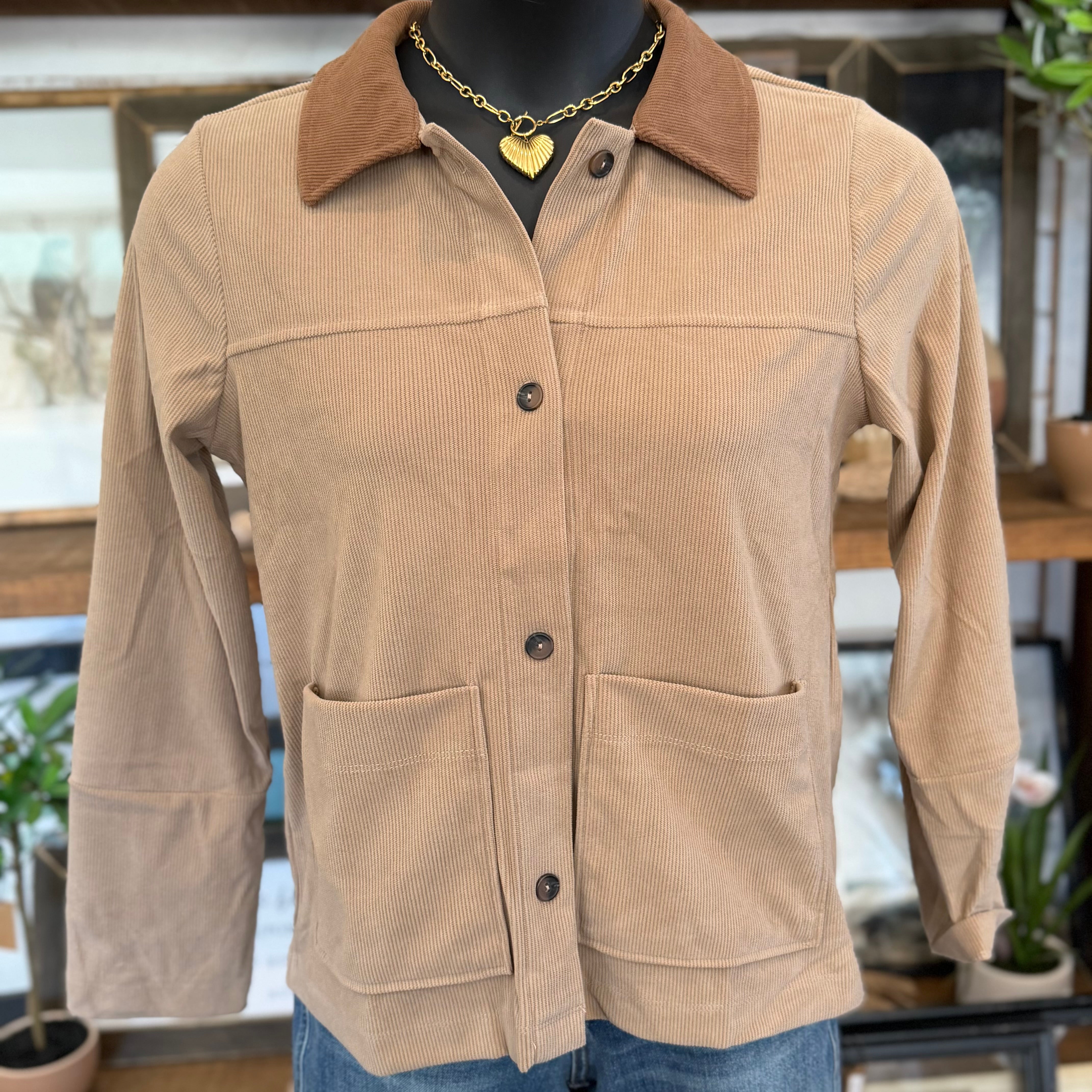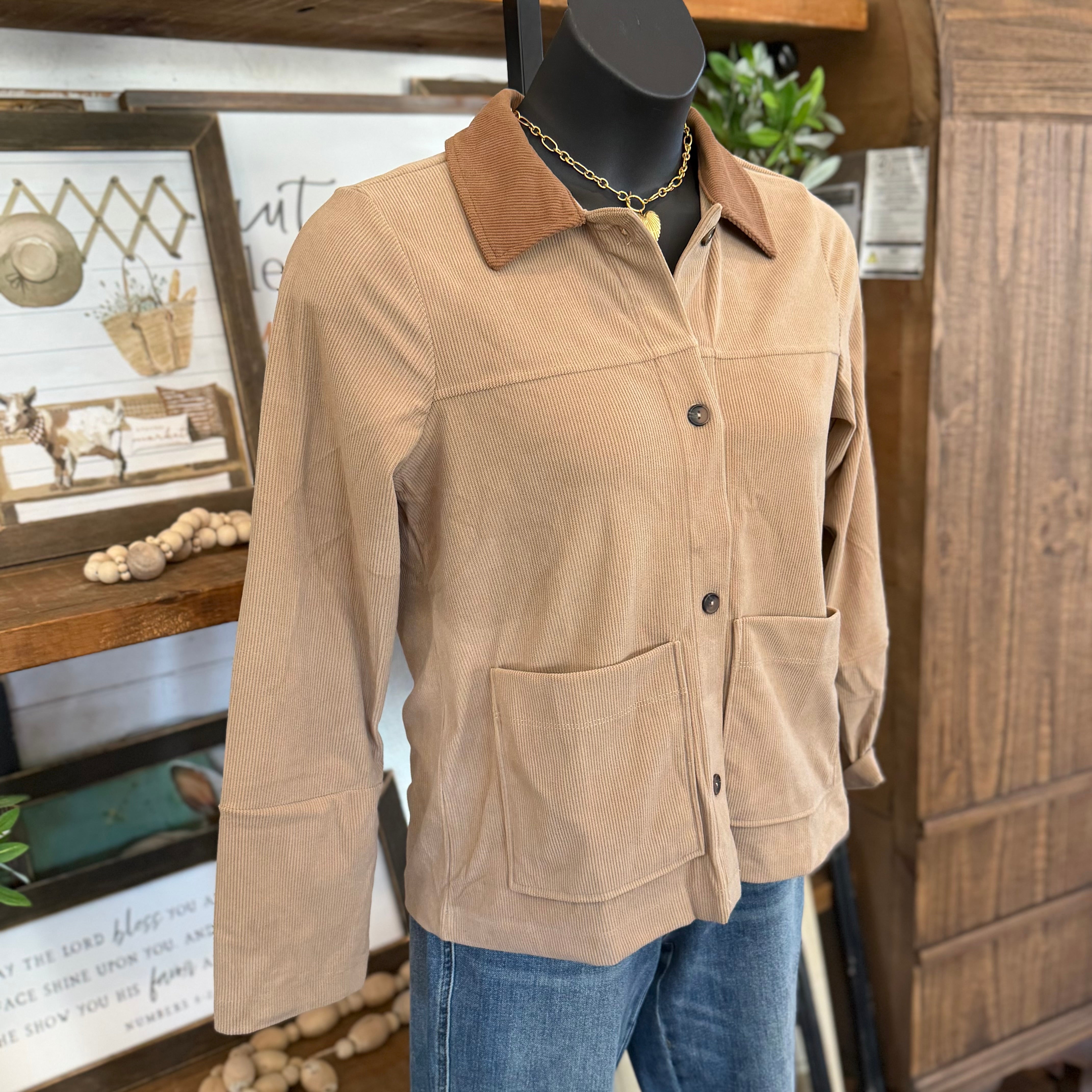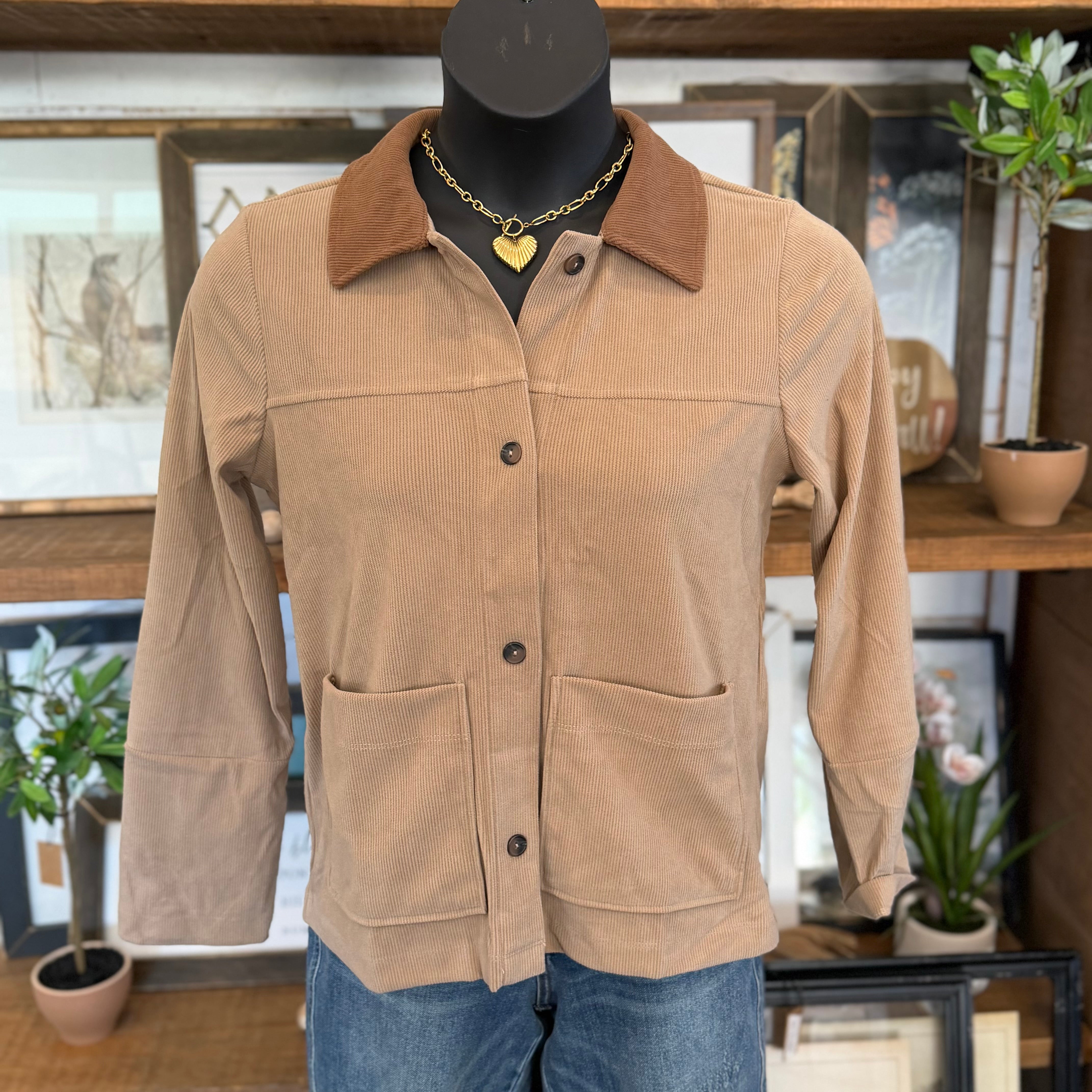 Collared Long Sleeve Button Down Jacket | Khaki-Brown