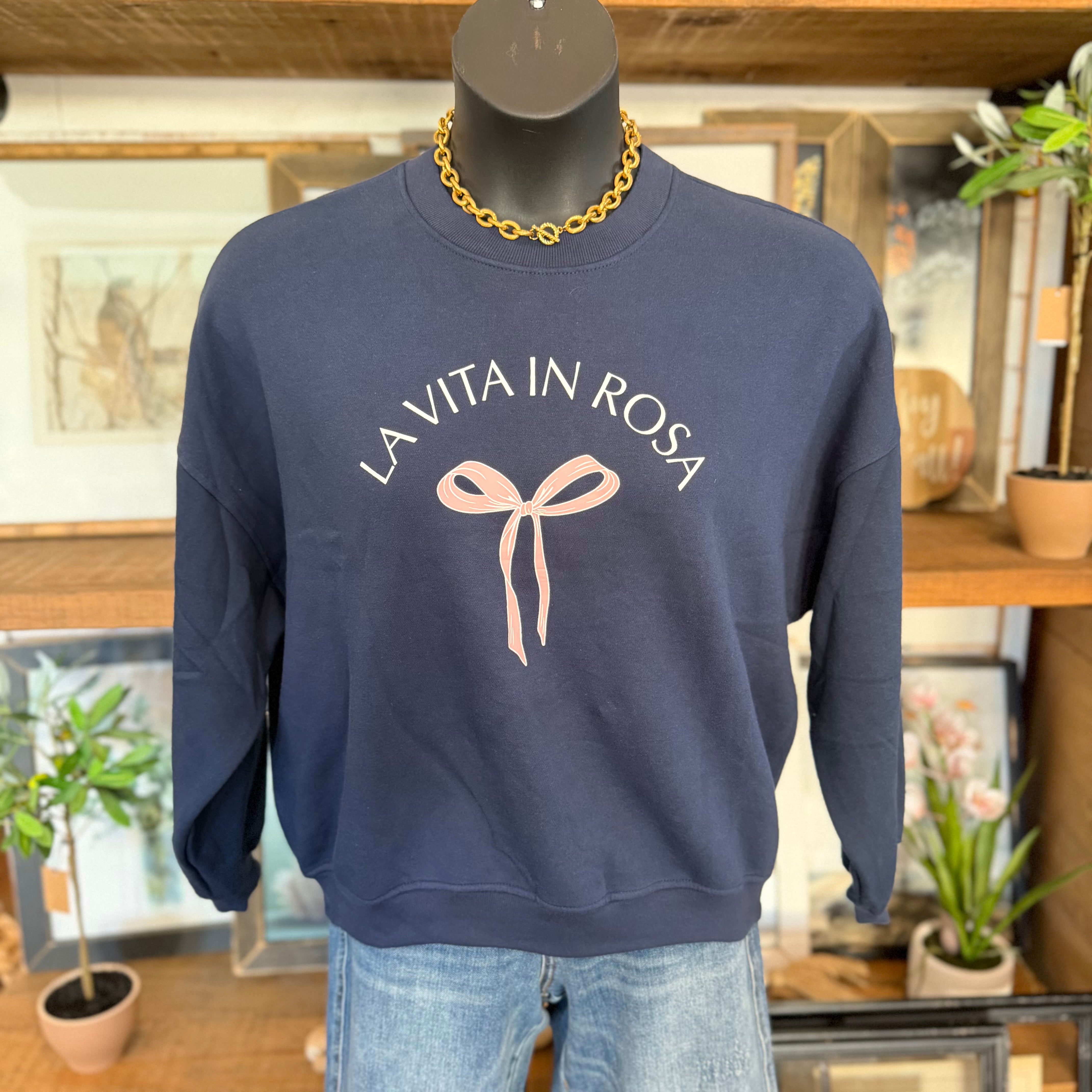 Bow Graphic Crew Neck Sweatshirt | Navy