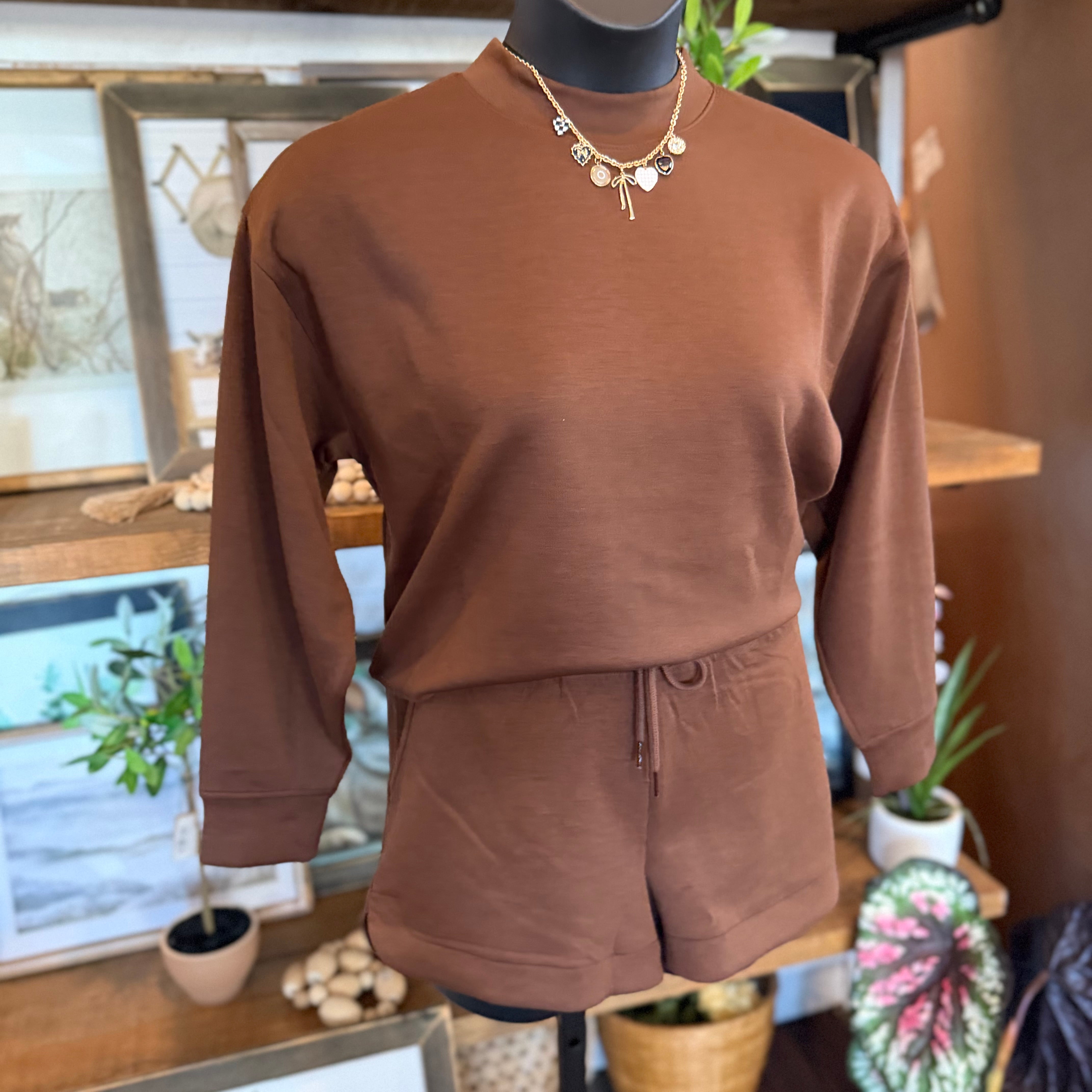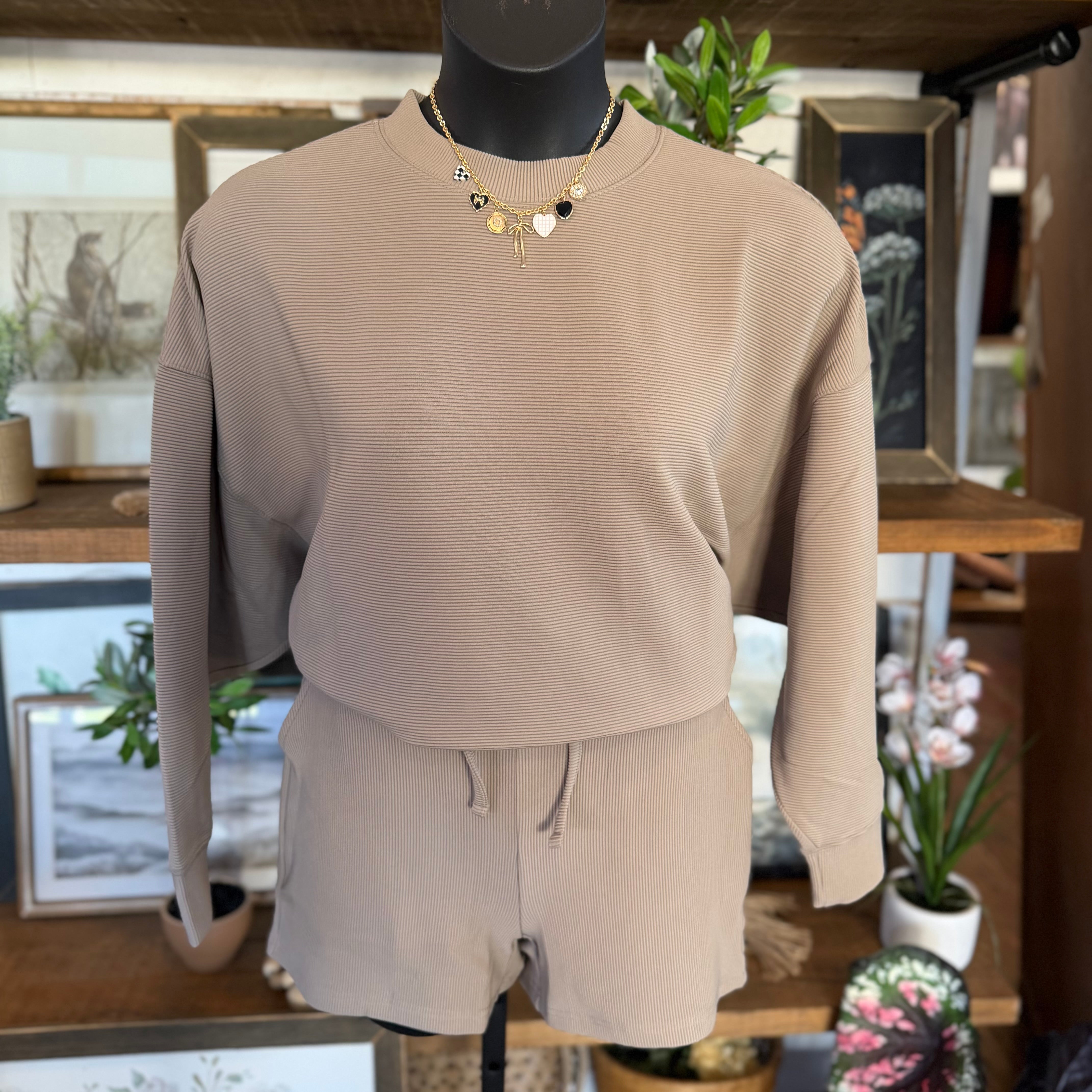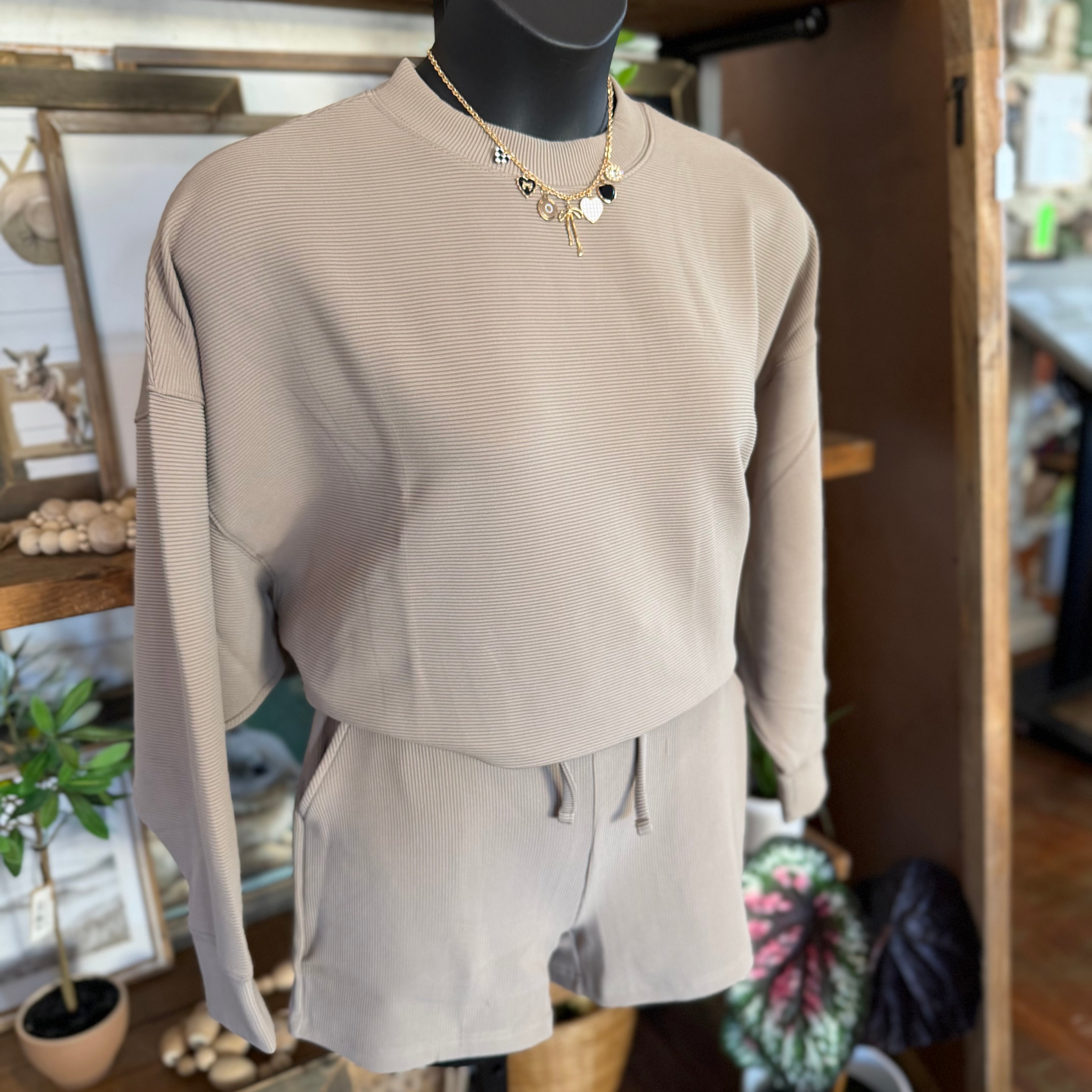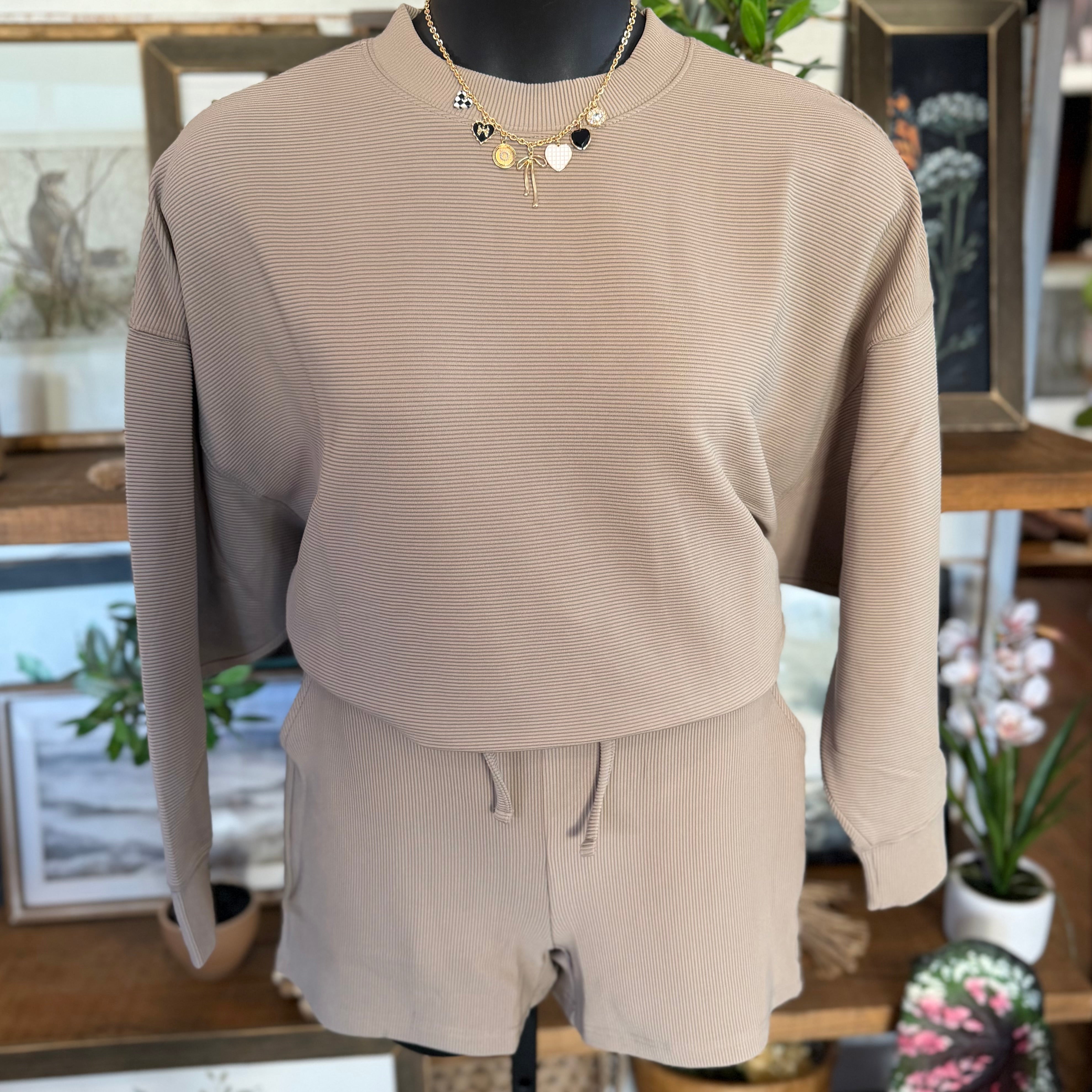 Ribbed Round Neck Pullover & Shorts Set | Ash Mocha