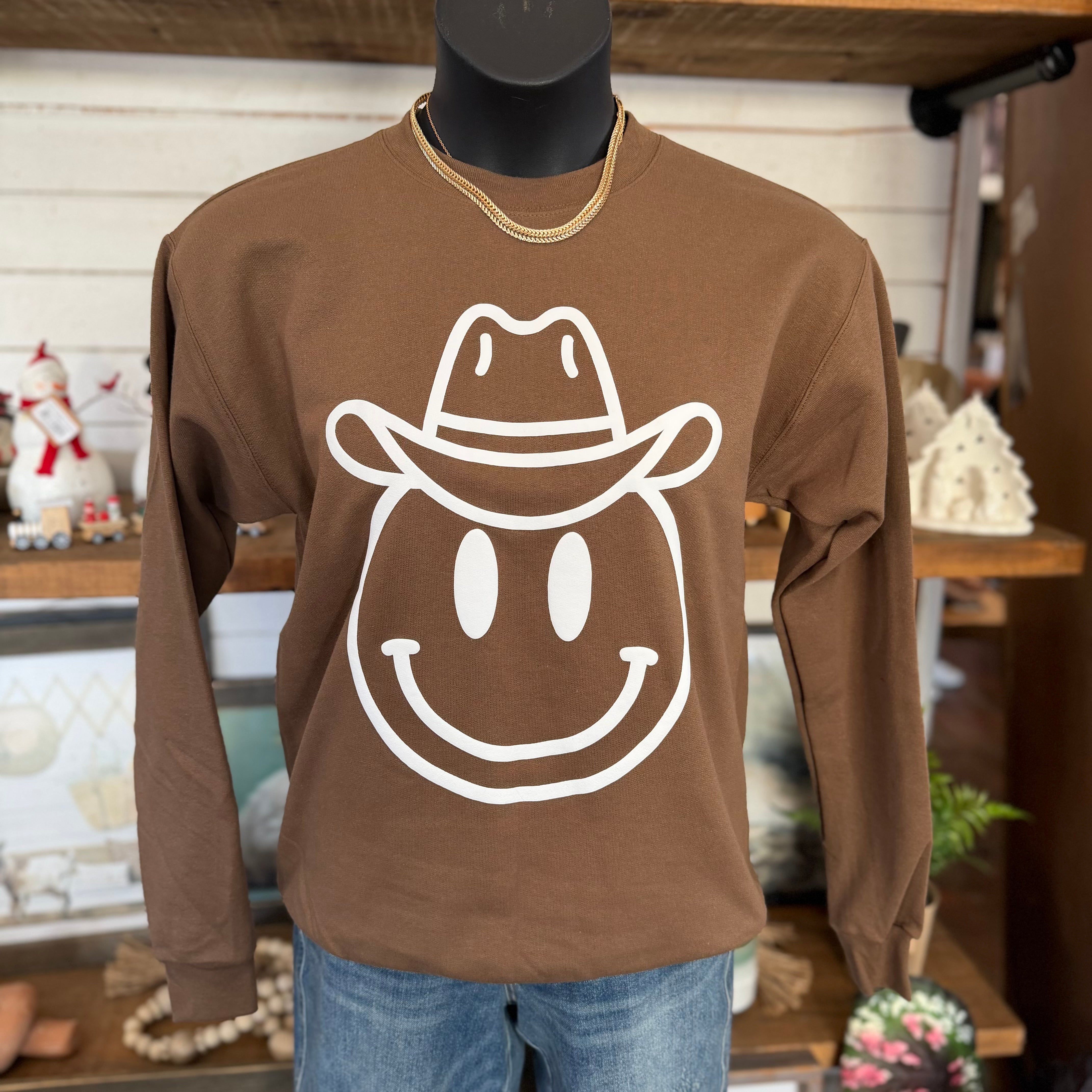 Cowboy Happy Face Puff Sweatshirt | Brown