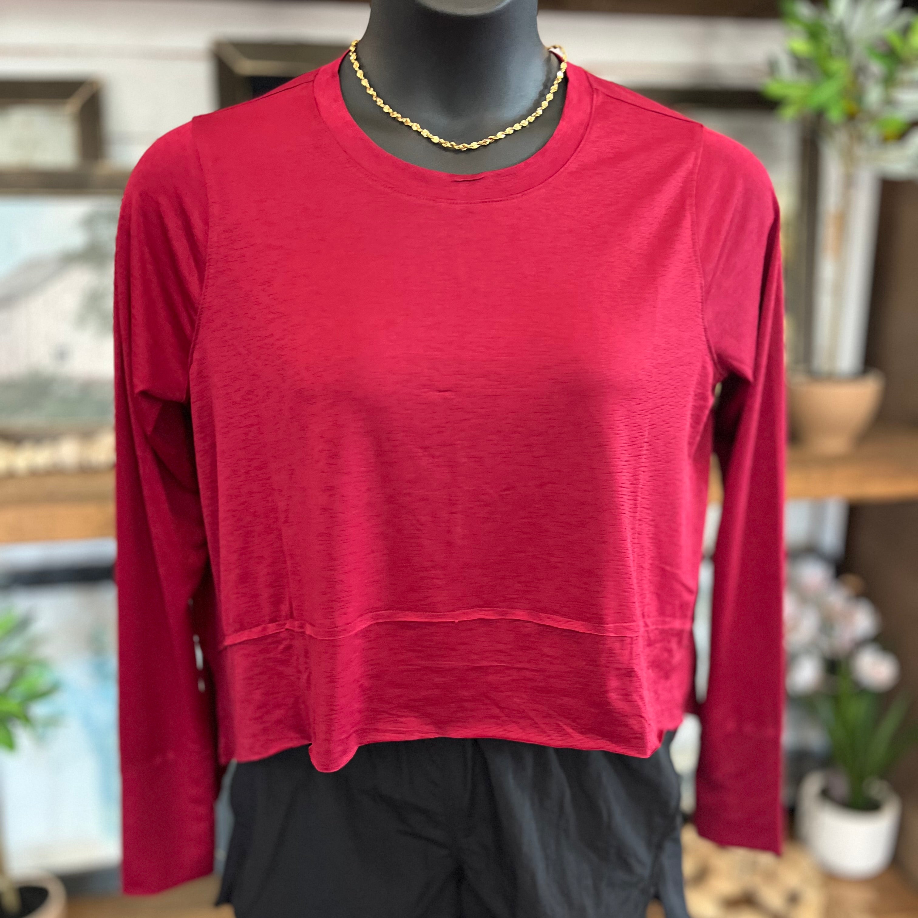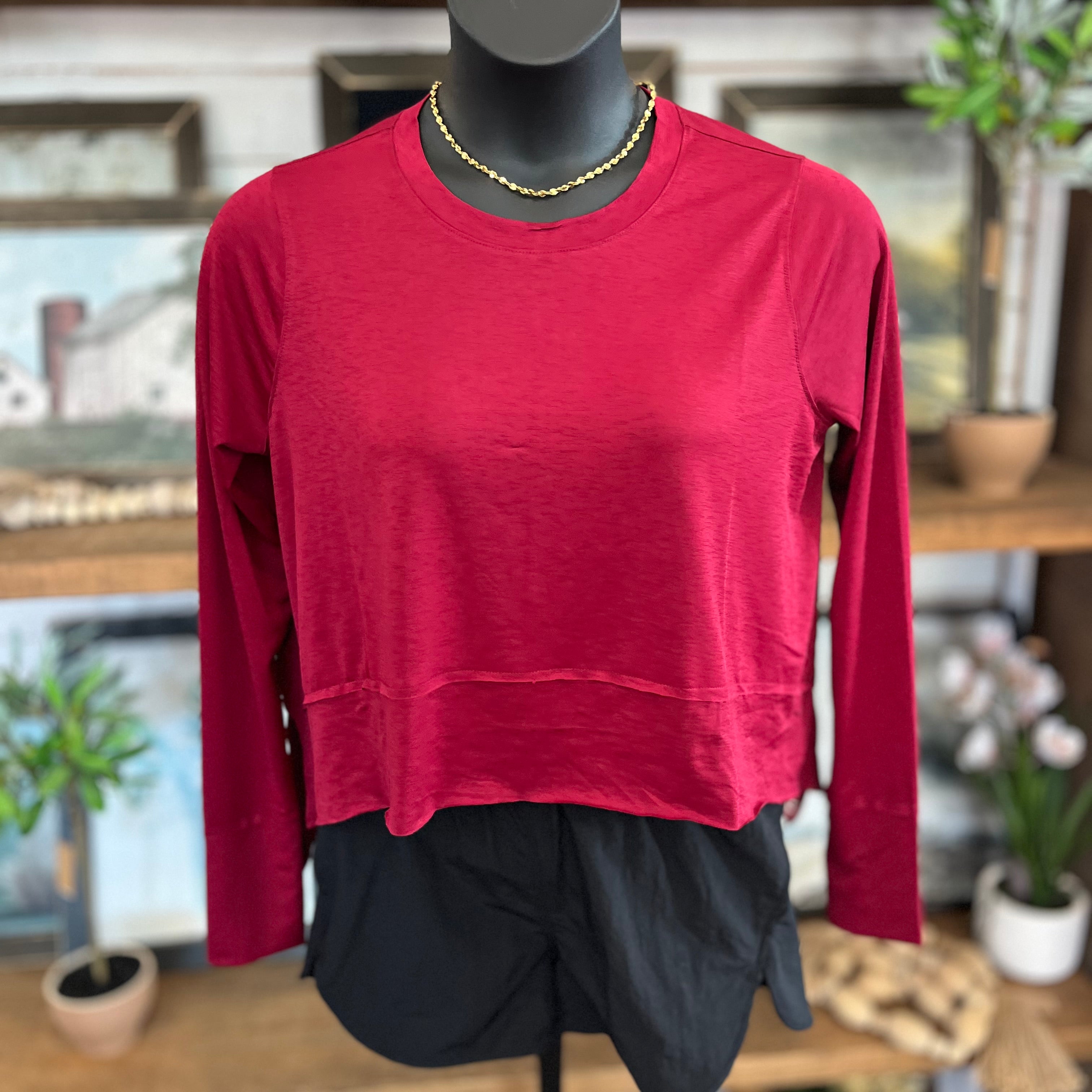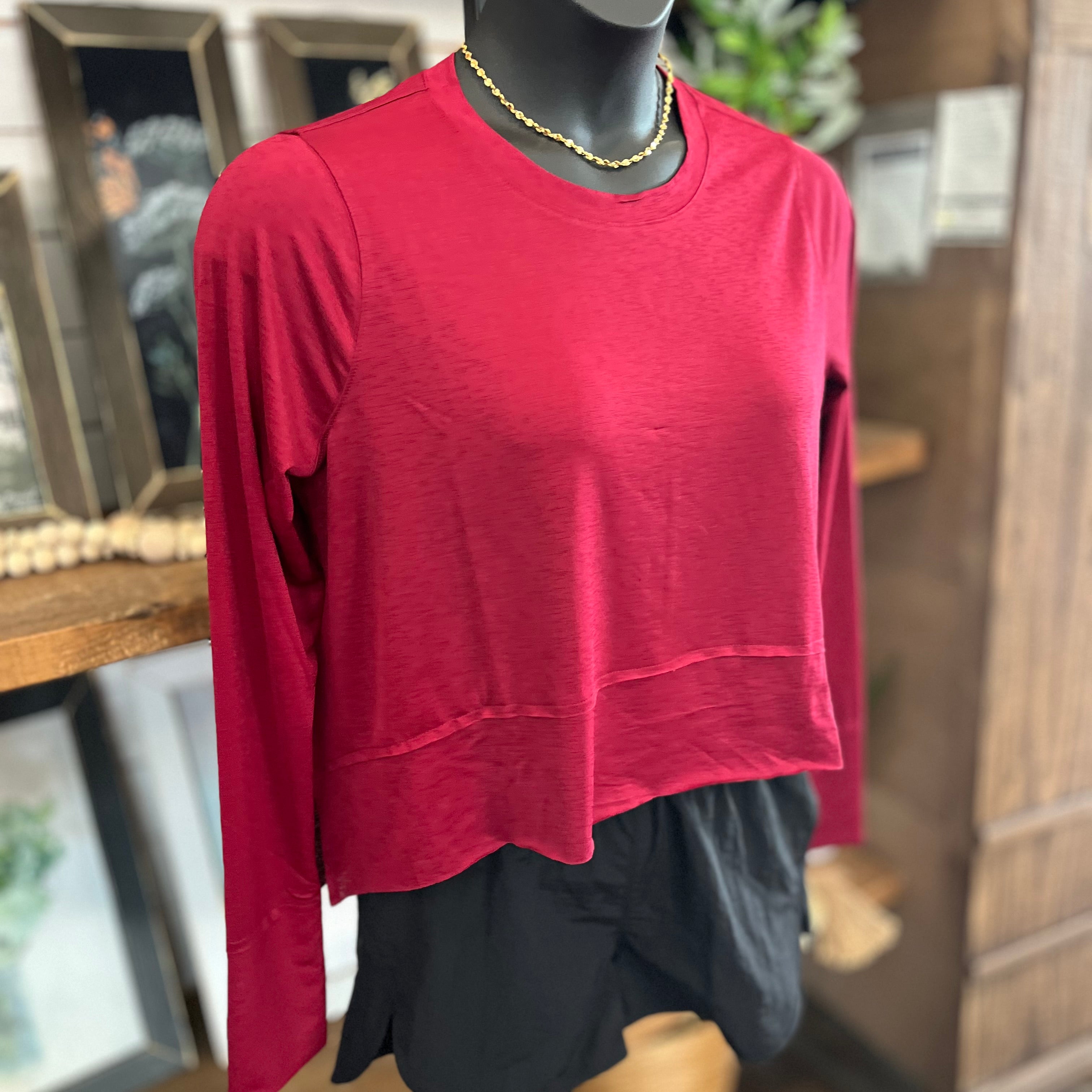 Shark Bite Side Slit Long Sleeve Top | Cabernet