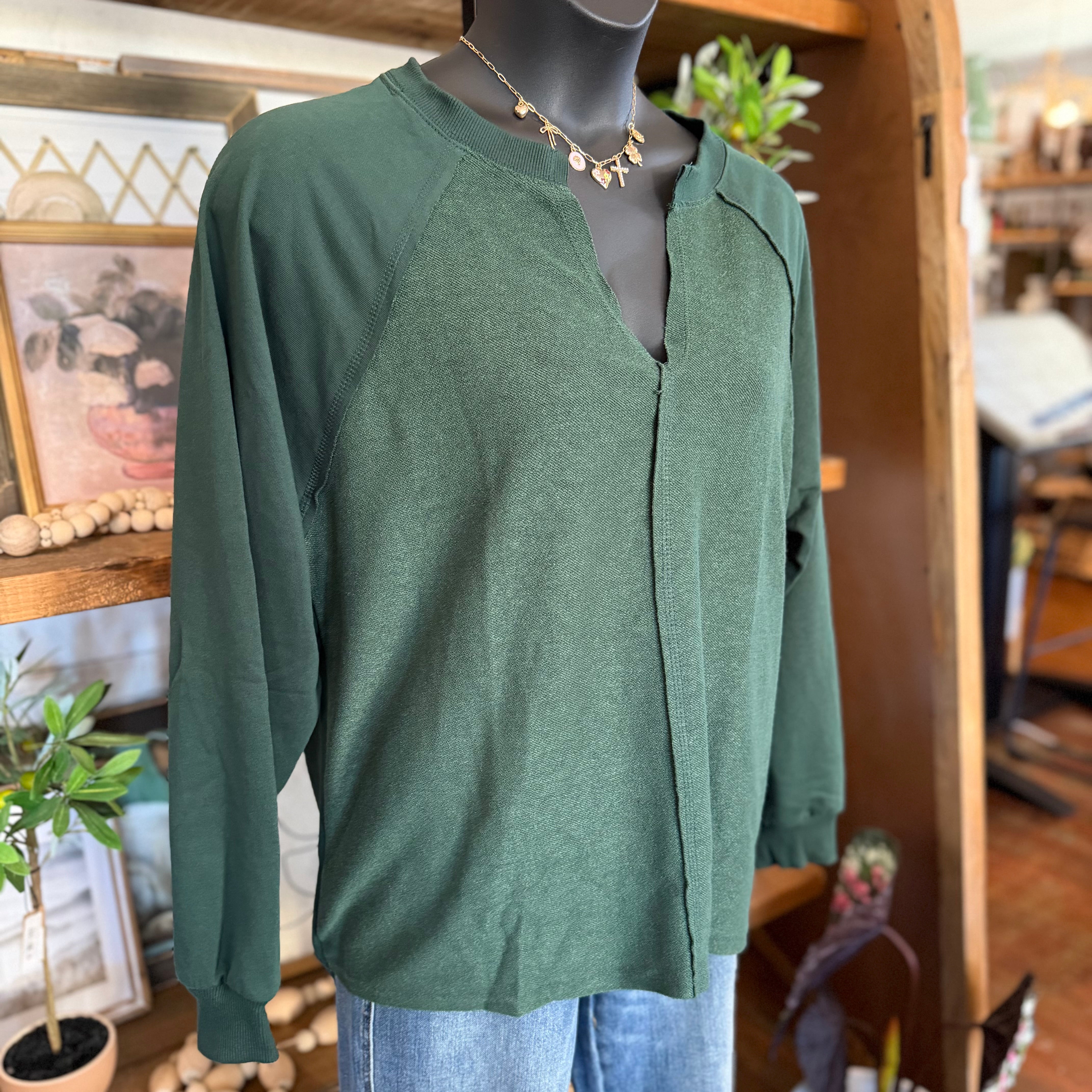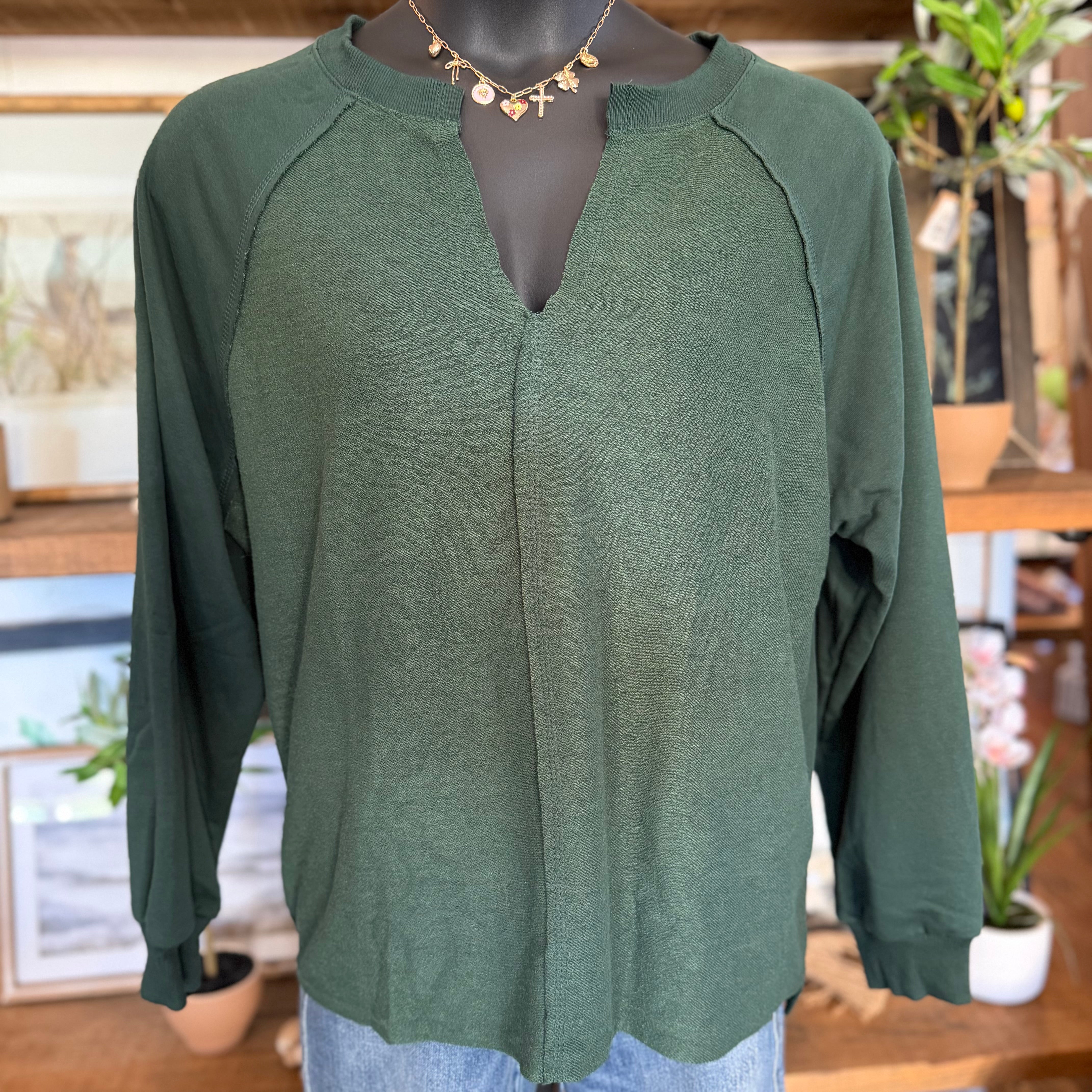 Plus Exposed Seam Relaxed Long Sleeve Knit Top | Hunter Green