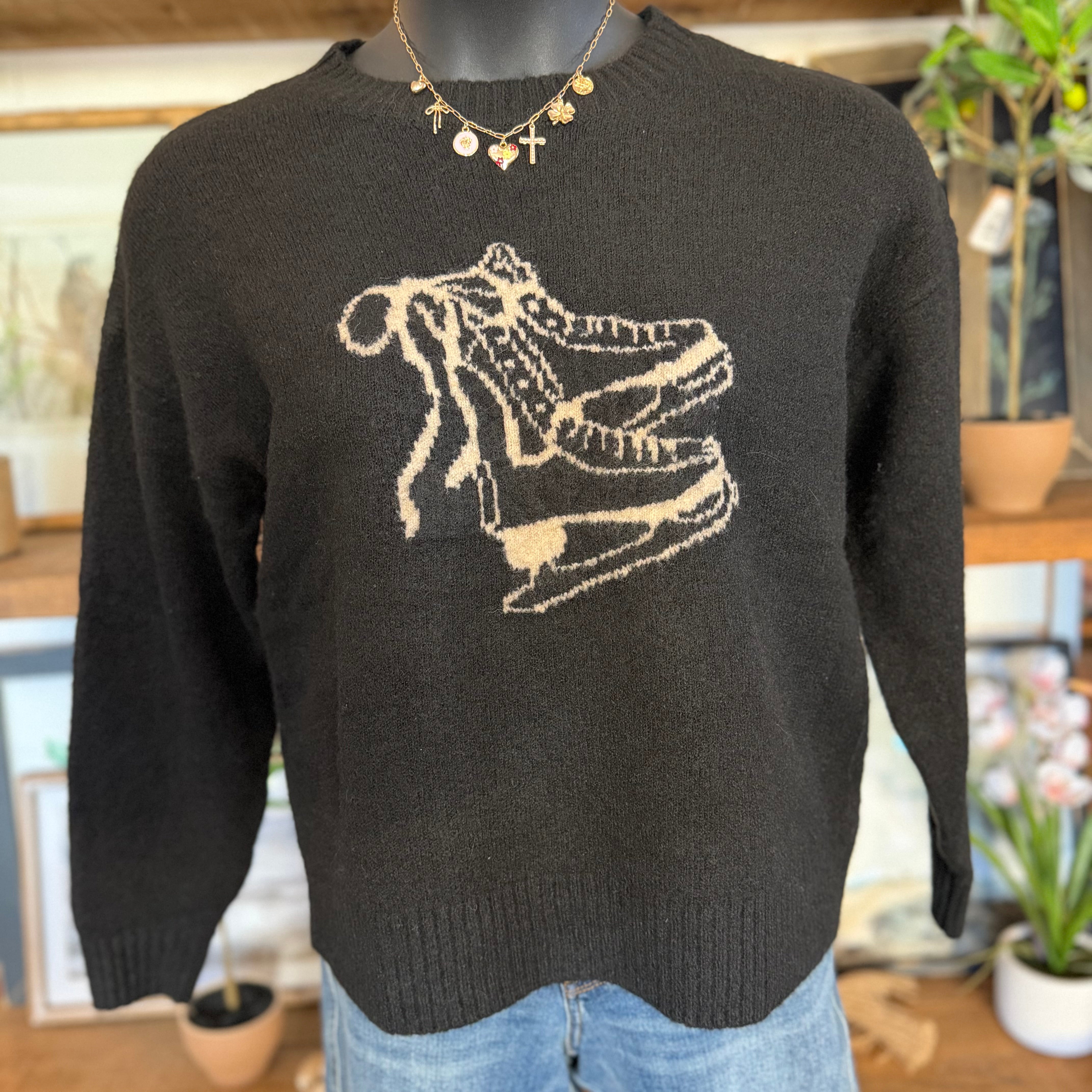 Ice Skate Jacquard Knit Pullover Sweater | Black