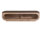 Wooden bench with a cushioned seat and open storage underneath. The Balam bench is a beautifully crafted piece made from sustainable mango and engineered teak wood. Its elegant design blends organic warmth with modern sophistication, making it a perfect addition to any space. The bench features a comfortable, deep brown cushioned seat with gently rounded corners and an open storage compartment for books, blankets, or decorative items. Ideal for an entryway, bedroom, or reading nook, the Balam bench adds effortless charm to any setting.