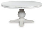 Relaxed living and cozy comfort—that’s what traditional farmhouse design is all about. And what better way to embrace your love of rustic country style than with the Chadworth dining table. Celebrating the beauty of simplicity, its thick antiqued white top and hearty pedestal base marry functionality with classic appeal for a fresh feel. This piece effortlessly pairs with assorted chairs in the collection for an eclectic look.