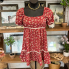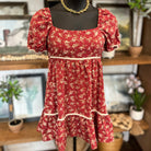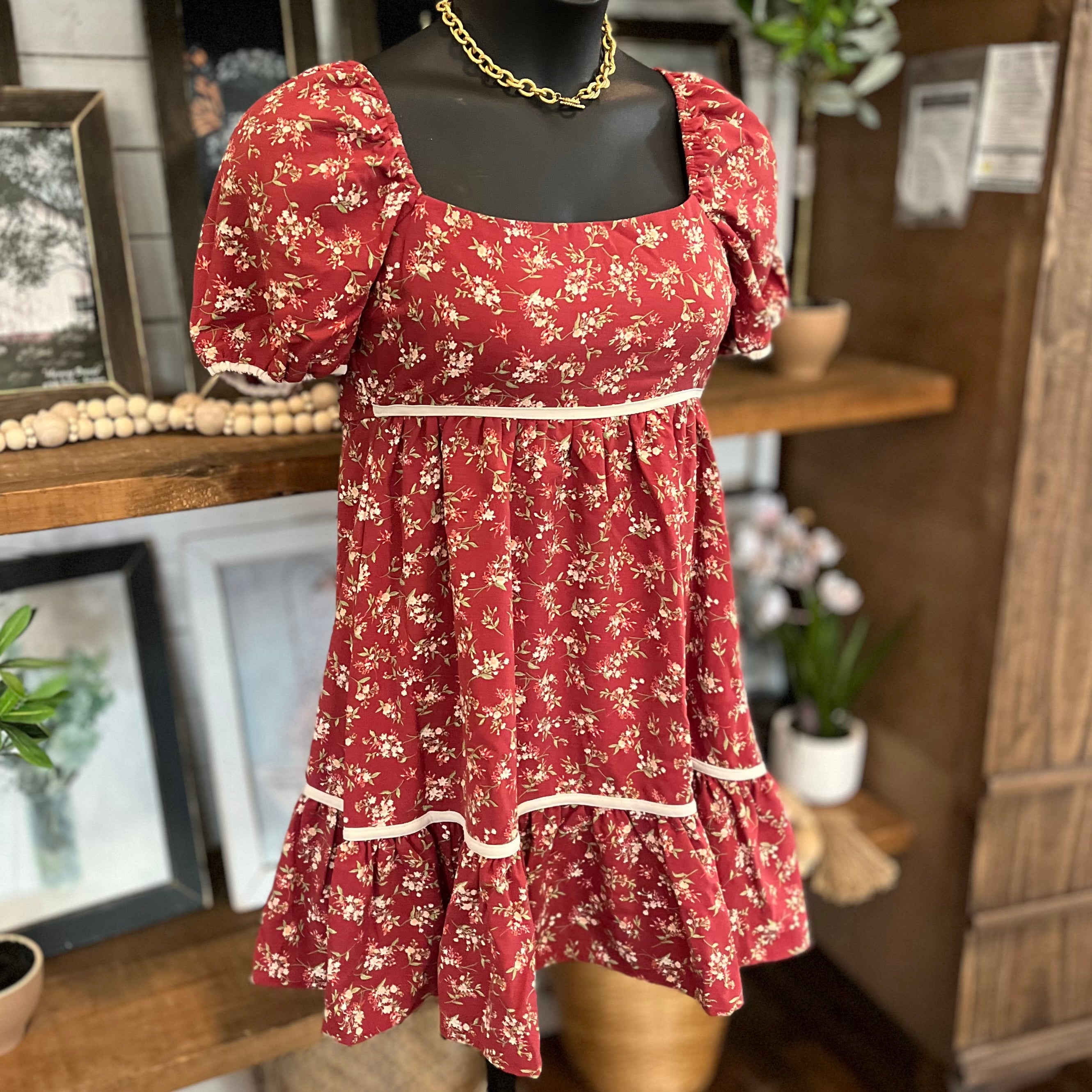 Floral Contrast Trim Detail Puffsleeves Mini Dress | Burgundy Multi