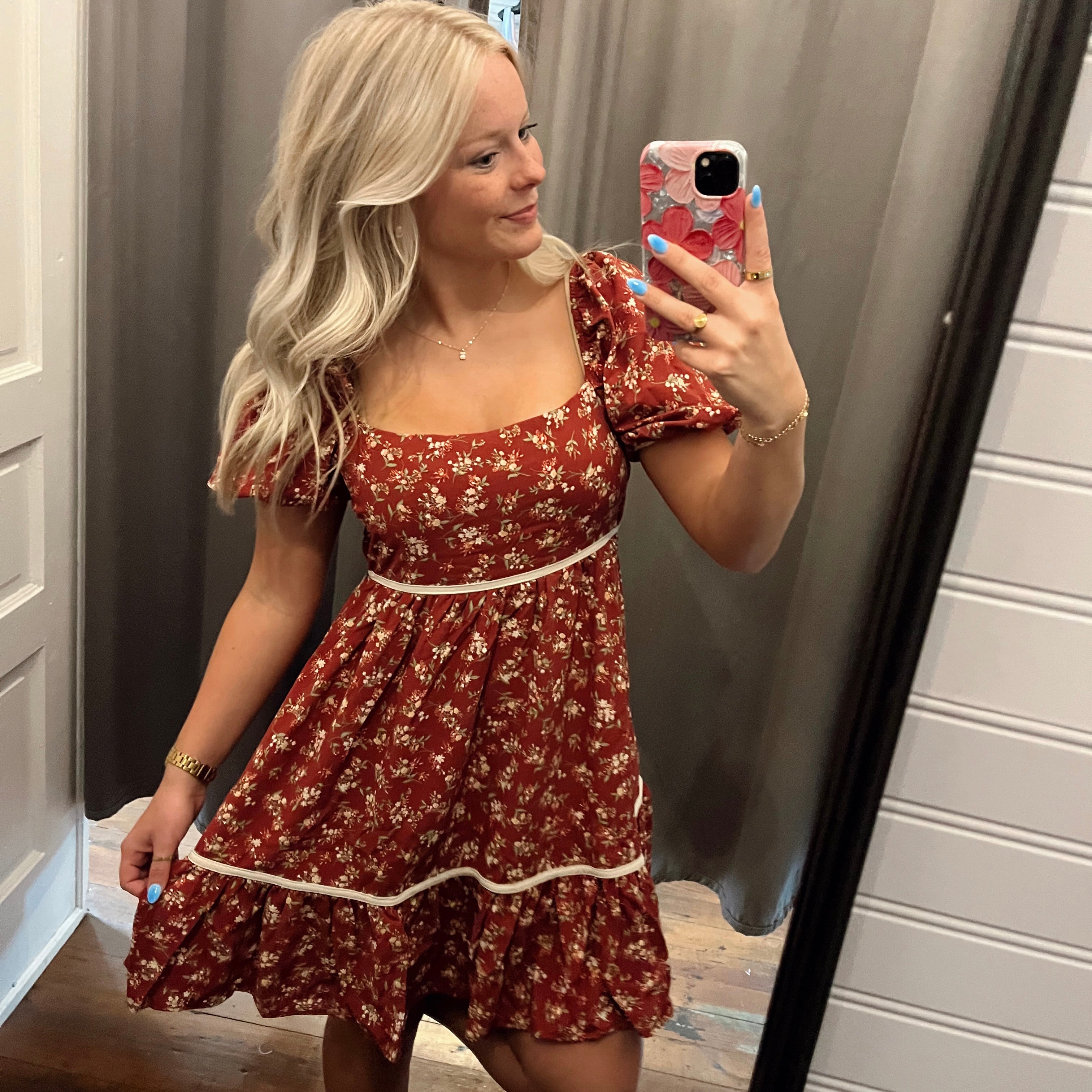 - This Floral Contrast Trim Detail Puffsleeves Mini Dress offers a delicate and feminine touch with its floral contrast trim and puffsleeves