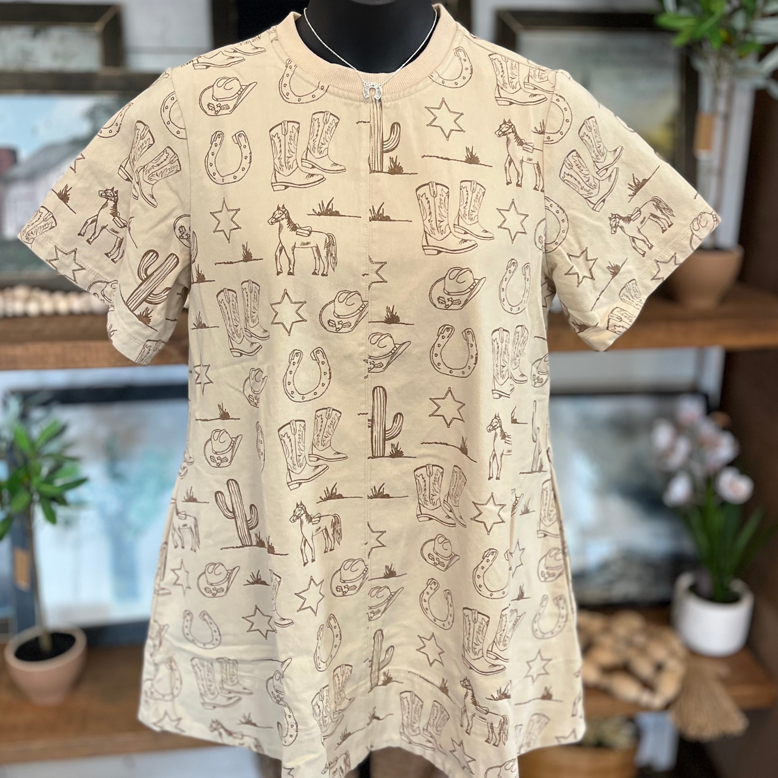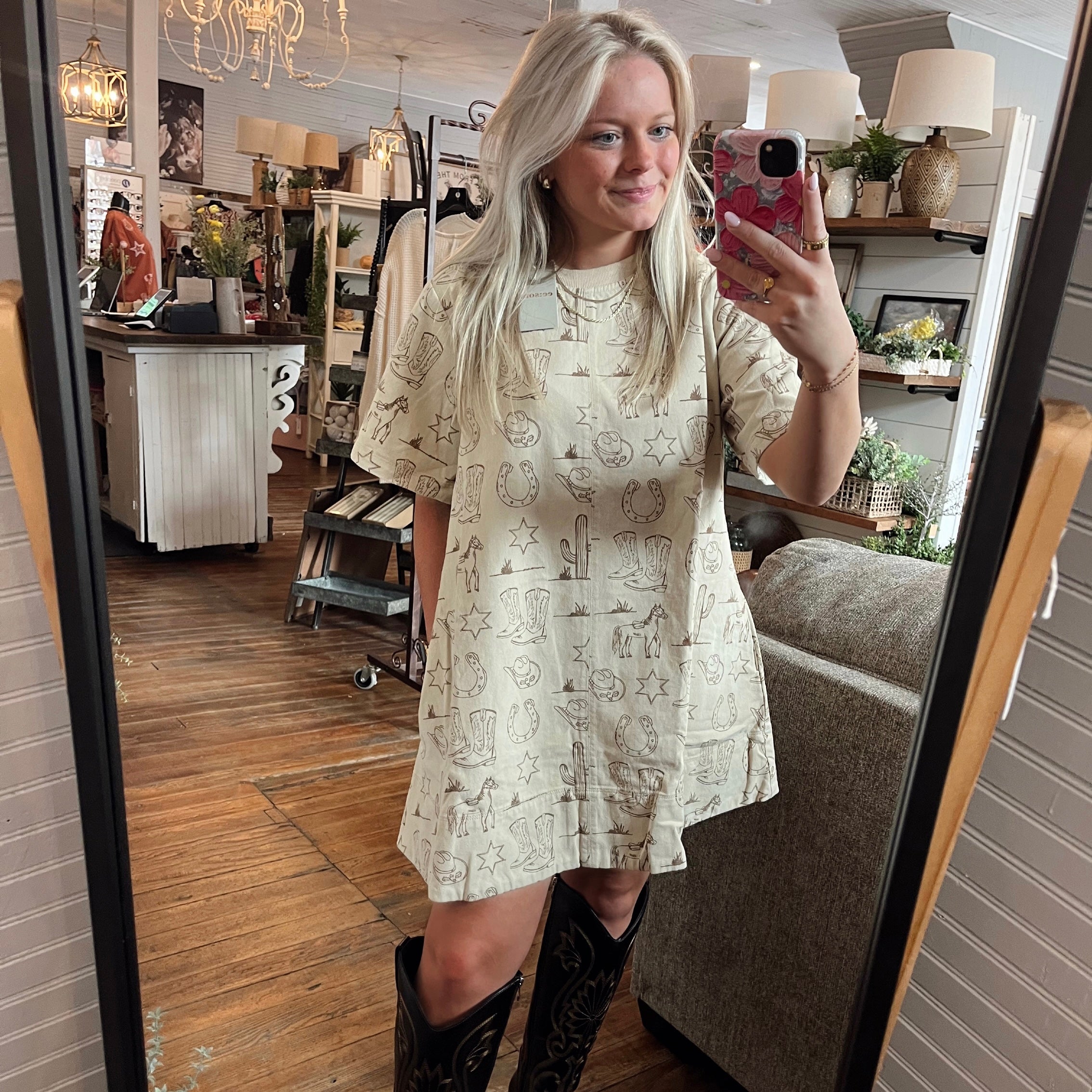 - Elevate your wardrobe with the Mineral Washed Western Mini Dress in Almond Latte