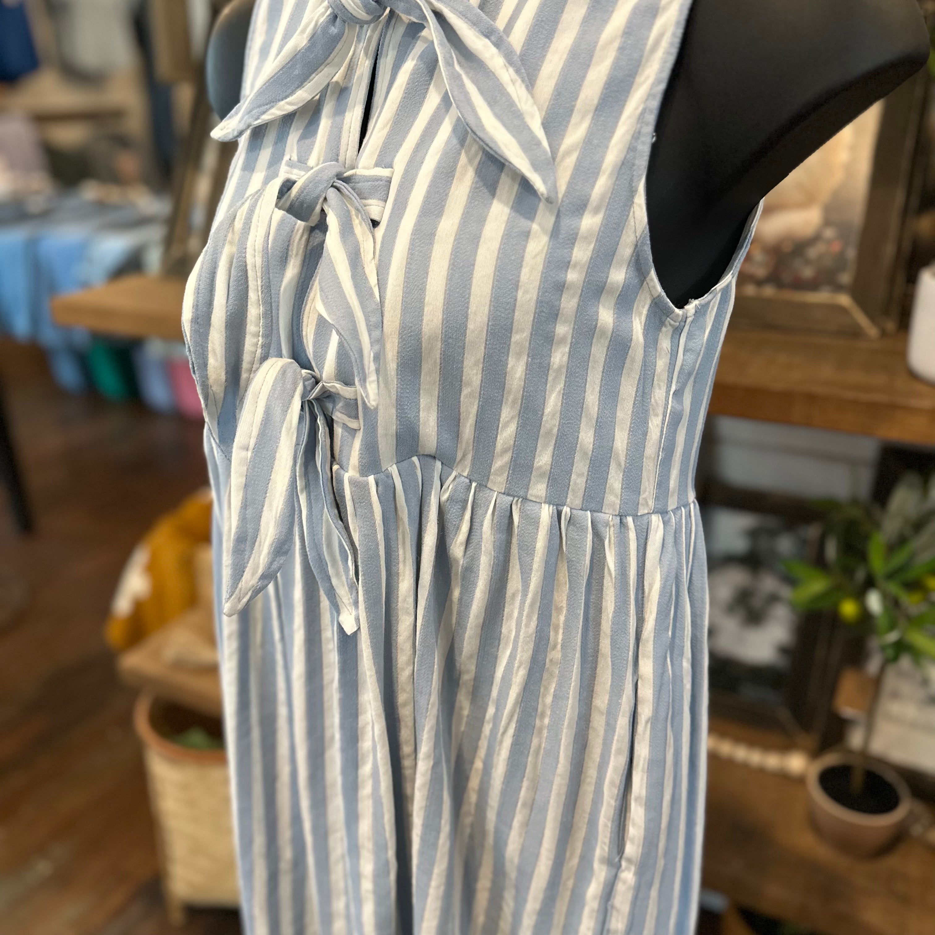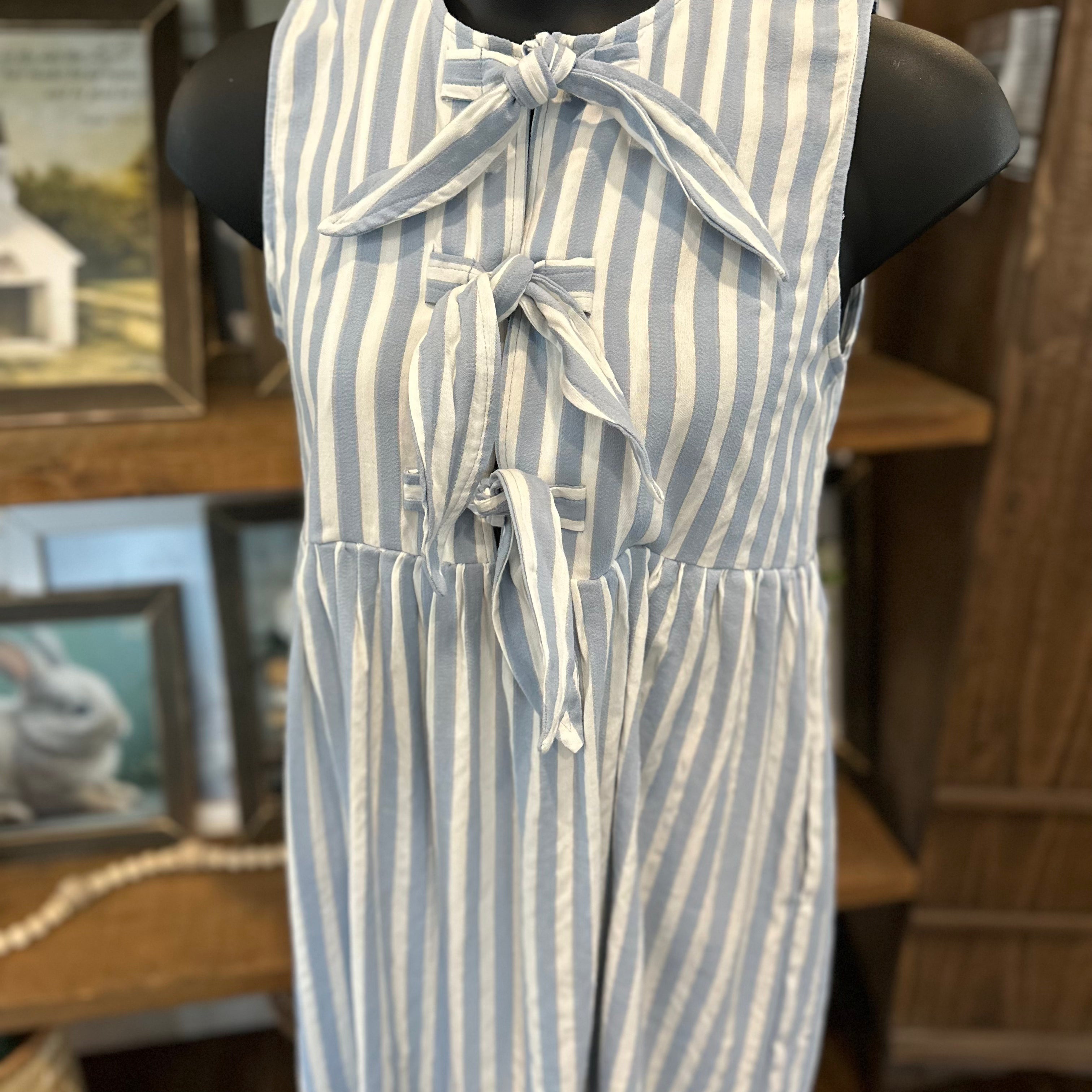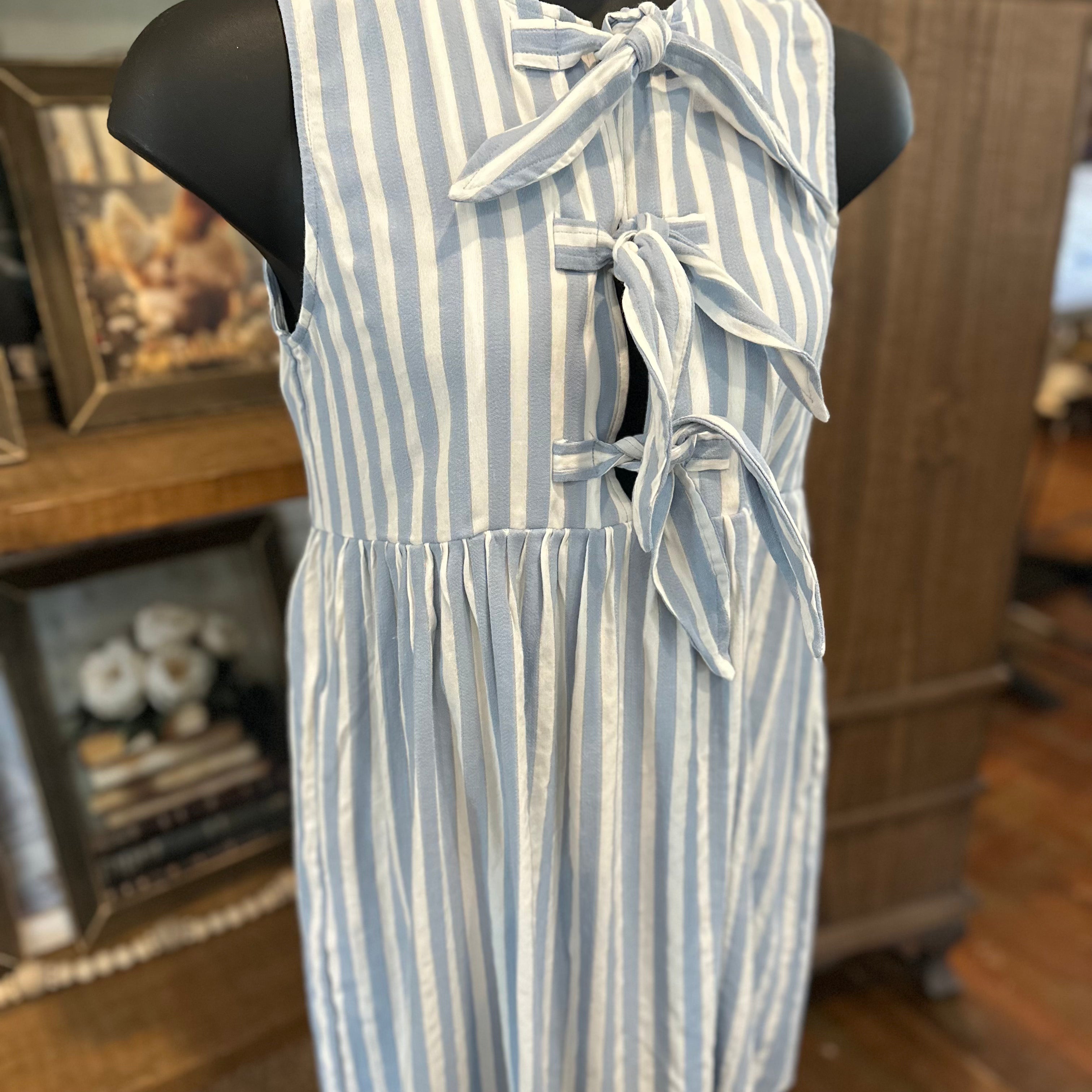 Vertical Striped Front Bow Detail Dress | Light Blue