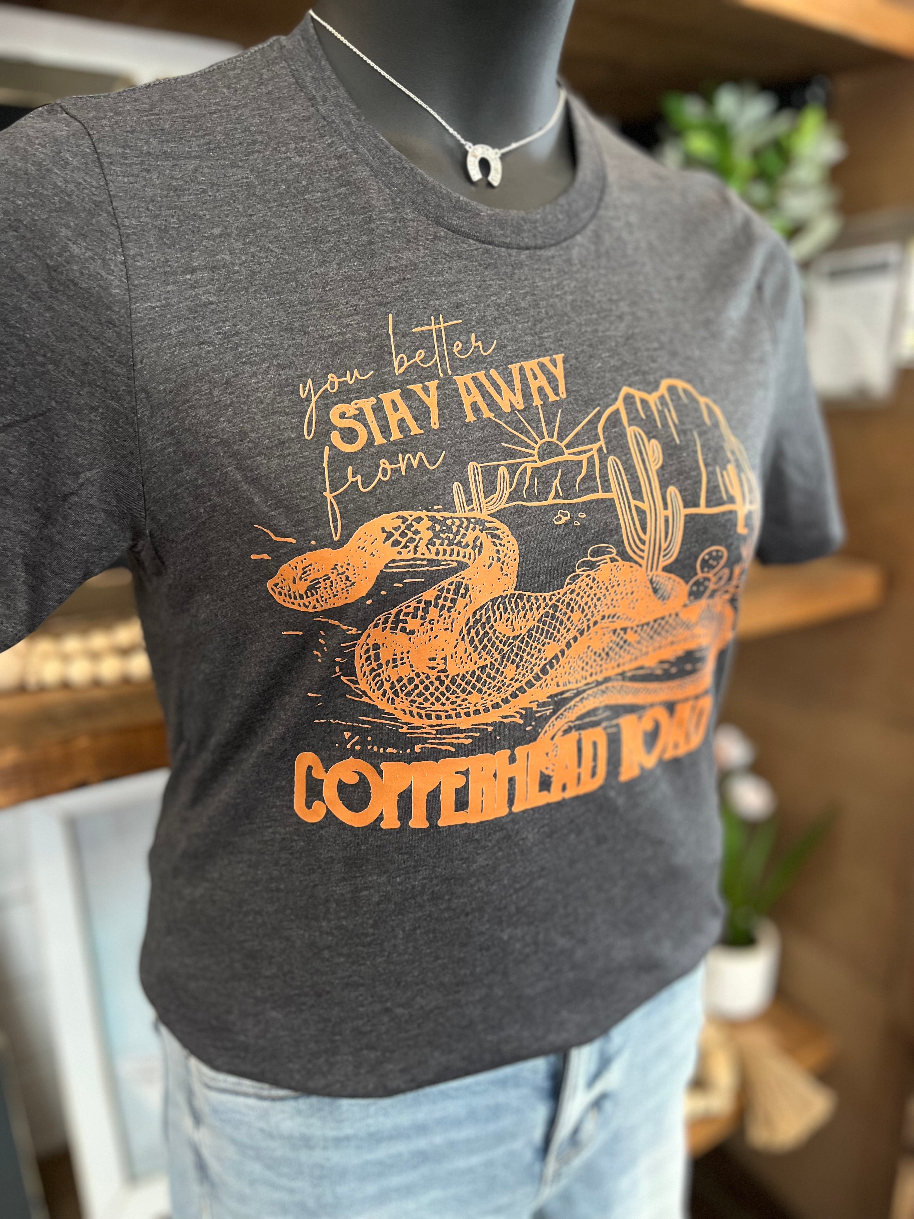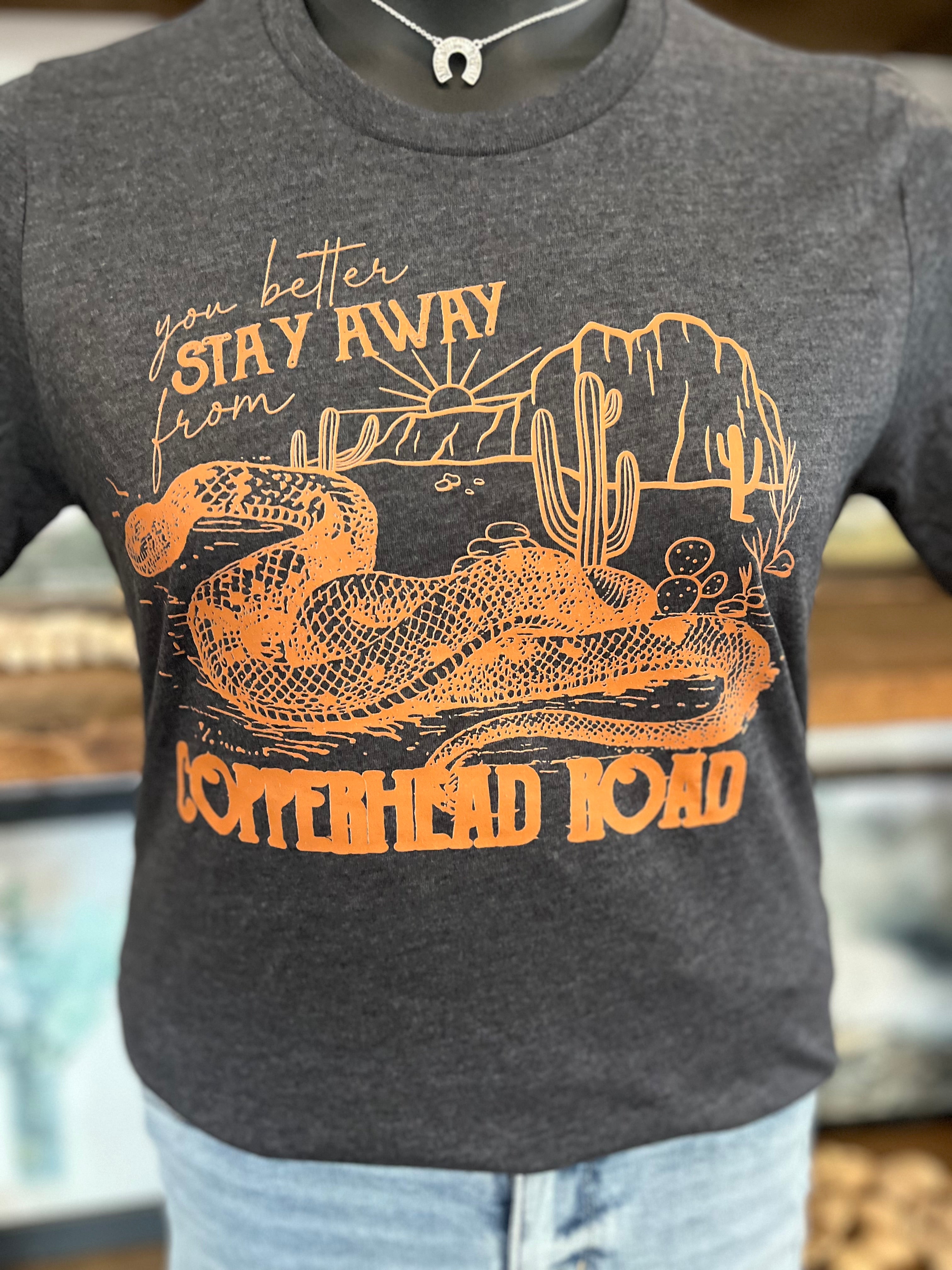 Copperhead Road Stay Away Dessert Snake Graphic Tee | Heather Charcoal