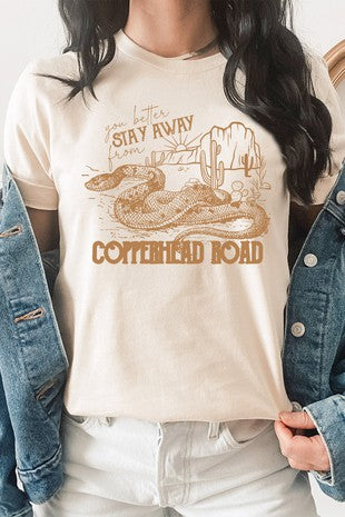 - Expertly crafted from a comfortable and durable blend of cotton and polyester, the Copperhead Road Stay Away Dessert Snake Graphic Tee provides a stylish and unique way to show your love for snakes