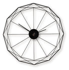 Cool, contemporary style with an industrial edge. This wall clock incorporates eye-catching geometry into your decor. A sleek blend of form and function, it expertly balances the edgy look of black metal with an open and airy design.