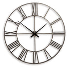 Casual style meets practical function with this wall clock. Roman numerals are easy to read on the sleek metal frame in an antiqued finish. Keeping track of time has never been so stylish.