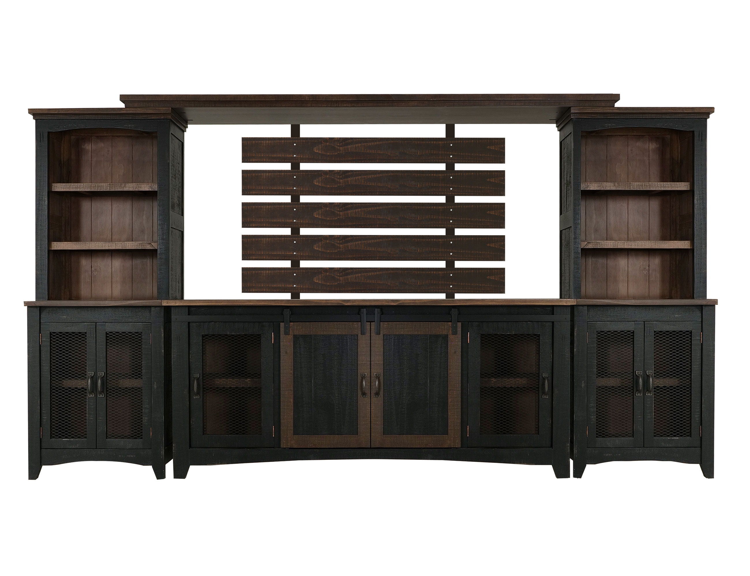 Universal Pier. Introducing our Pueblo collection, crafted from solid pine wood. This rustic collection is the perfect addition to bring your dream space to life. It features a hand-distressed finish in black and brown on the tops.