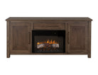 1 Drawer, 2 Door Fireplace TV Stand 70". Novus Lodge is a revamped version of our bestseller, the Lodge collection. The simplicity of its shapes and warm color palette makes it a timeless collection. Novus Lodge showcases lightly distressed premium woods such as poplar and oak in a warm brown finish that enhances the beauty and character of the wood.